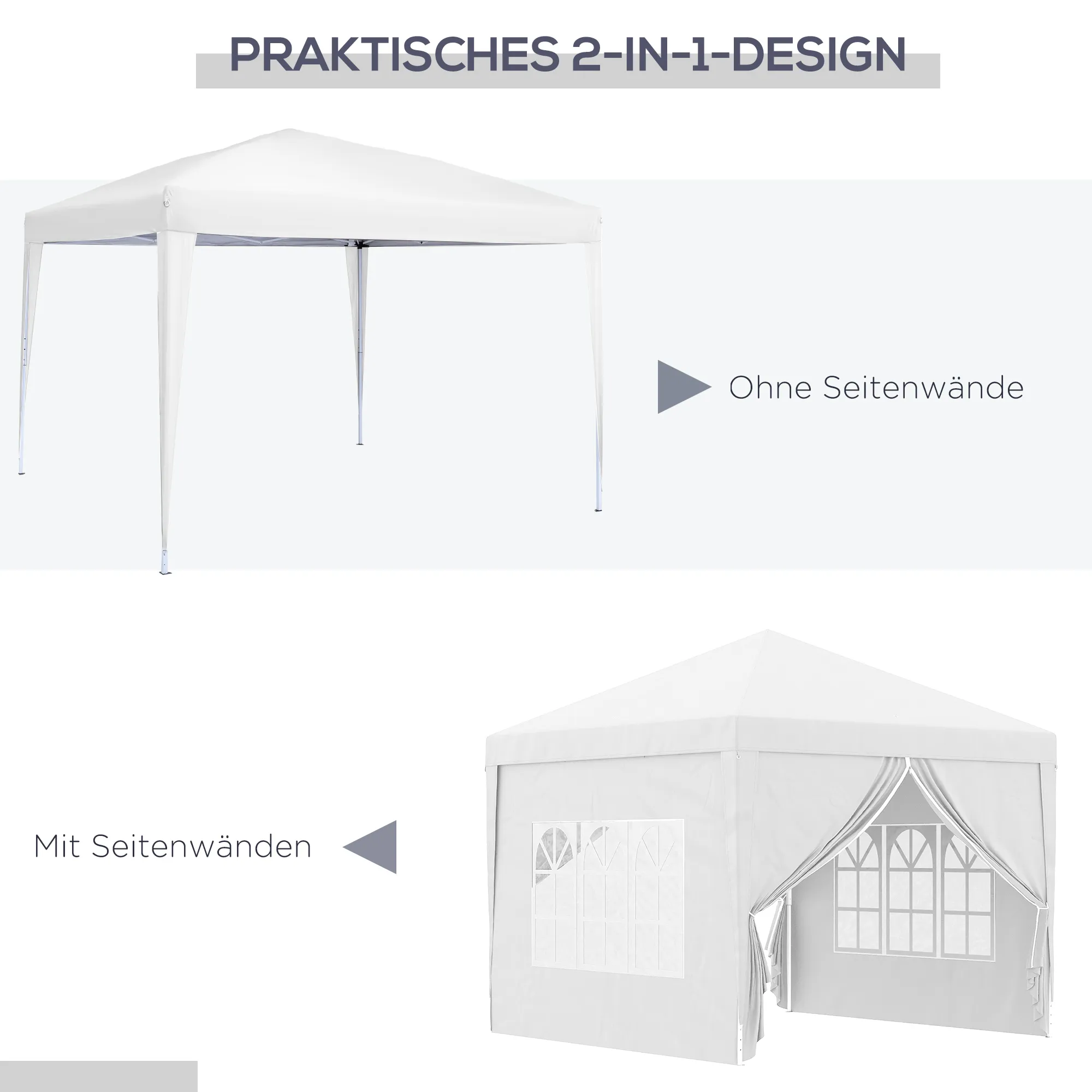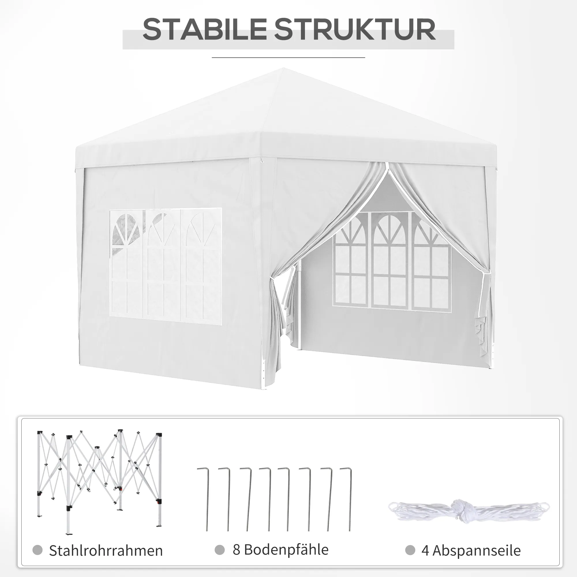 3 x 3 m Pavillon mit 4 Seitenwänden, Fenster, Festzelt mit UV-Schutz, Gartenzelt inkl. Tragetasche, Stahl, Weiß