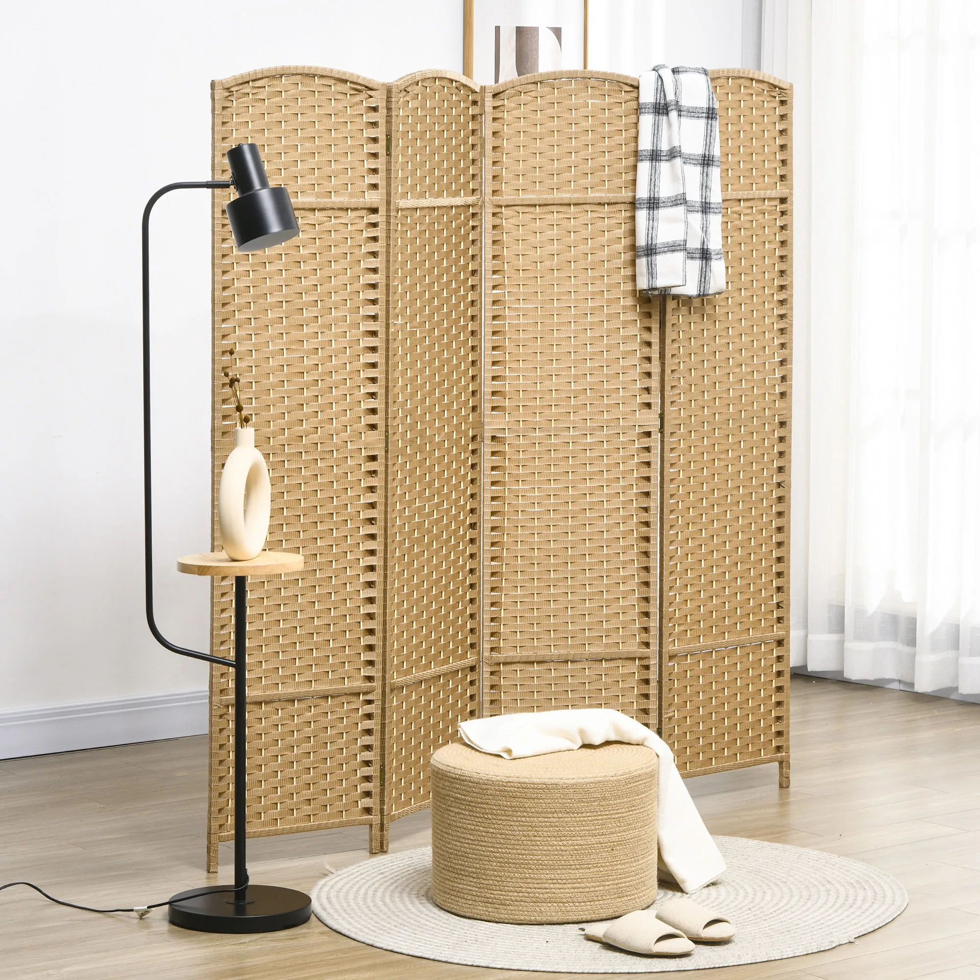 4-teiliger Raumtrenner, Faltbarer Sichtschutz, Sichtschutzwand für Wohnzimmer, Schlafzimmer, Homeoffice, Natur
