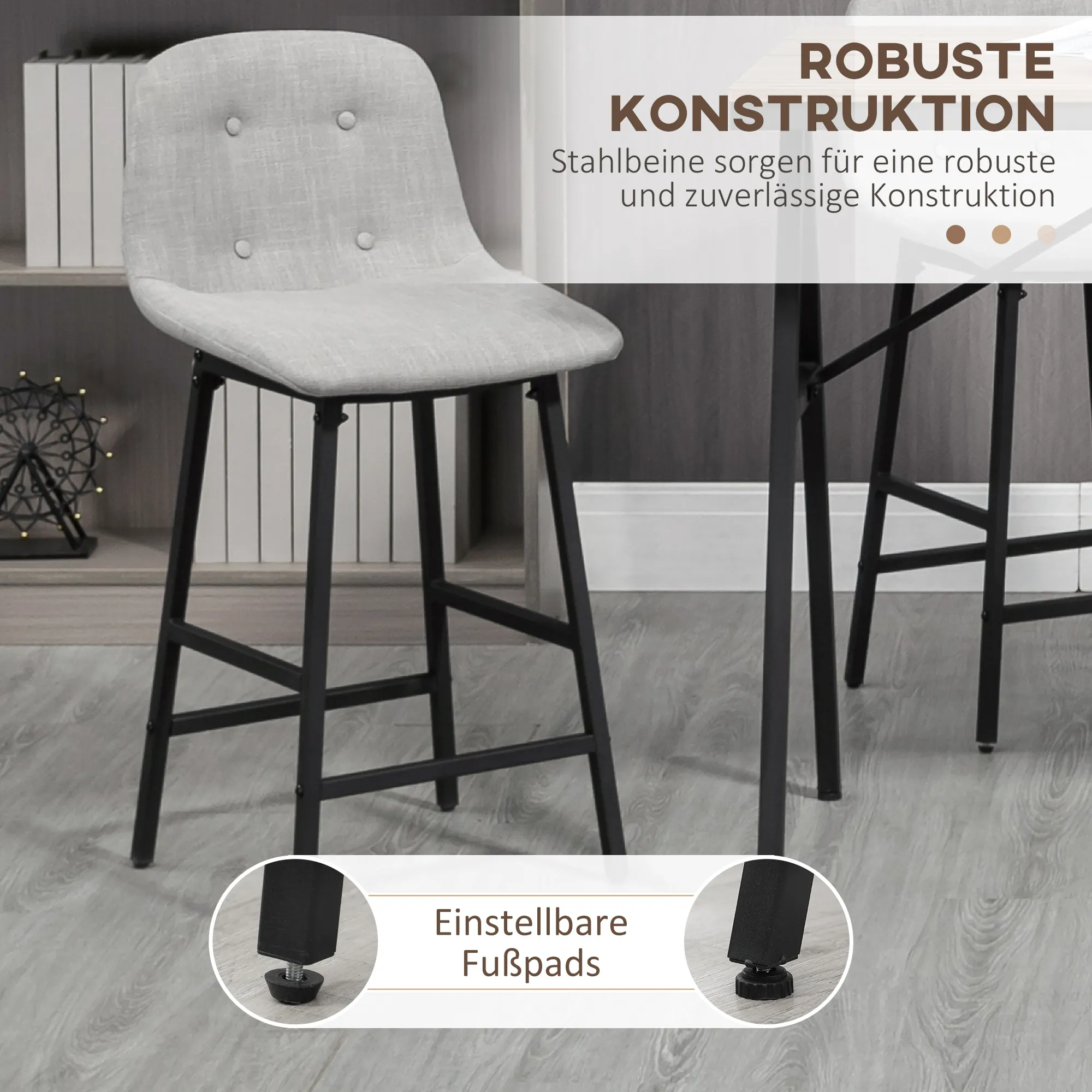 - Verstellbare Füße des Bartisch Sets, um den Boden vor Kratzern zu schützen und stabil zu halten.