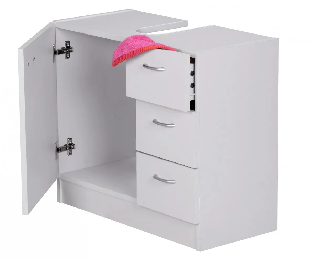 WOHNLING Bad Waschbecken Unterschrank WL1.345 - 54 x 63 x 30 cm 1 Tür, 3 Schubladen, weiß