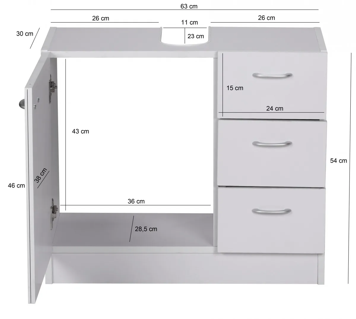 Wohnling Bad Waschbecken Unterschrank 54 x 63 x 30 cm 1 Tür