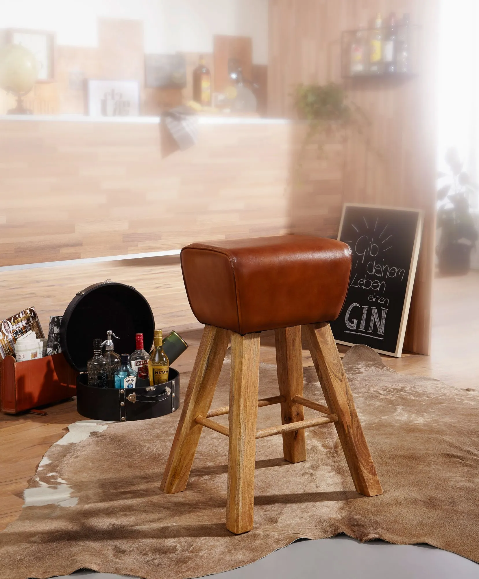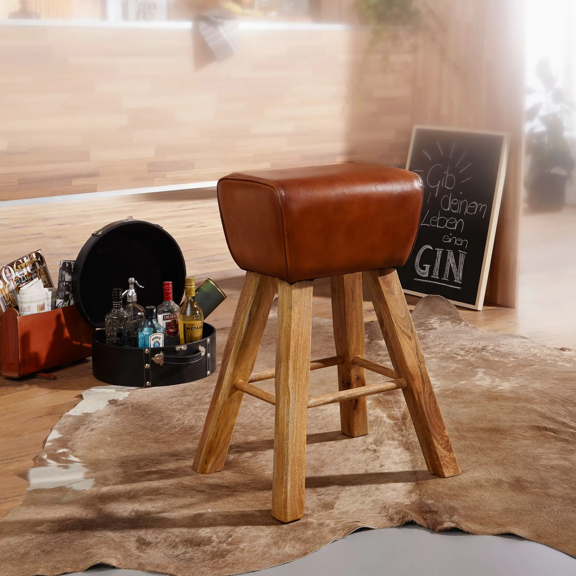 Wohnling Barhocker Turnbock 43x75x43 cm Mango Massivholz / Echtleder