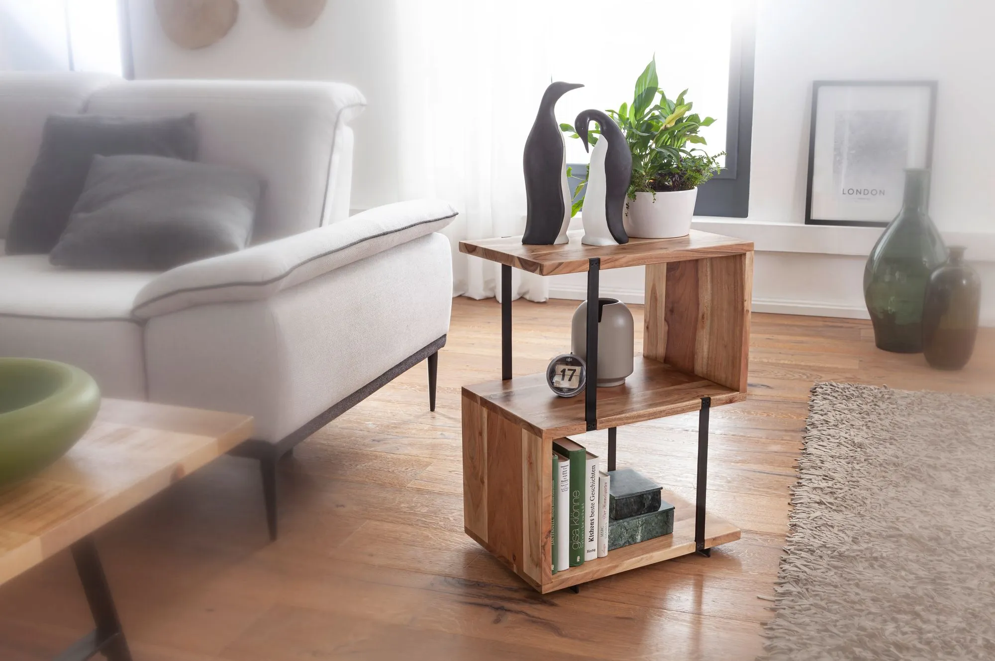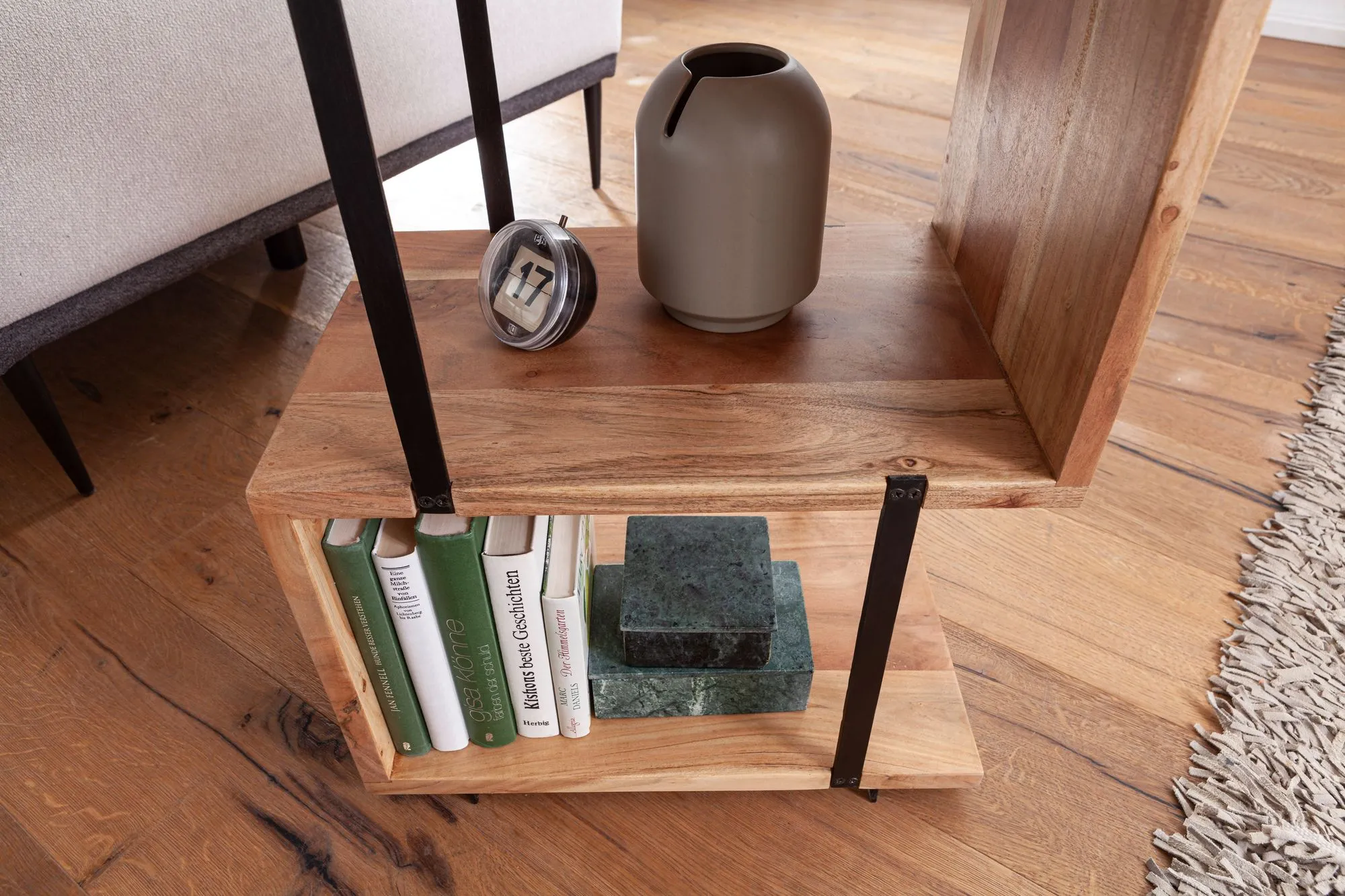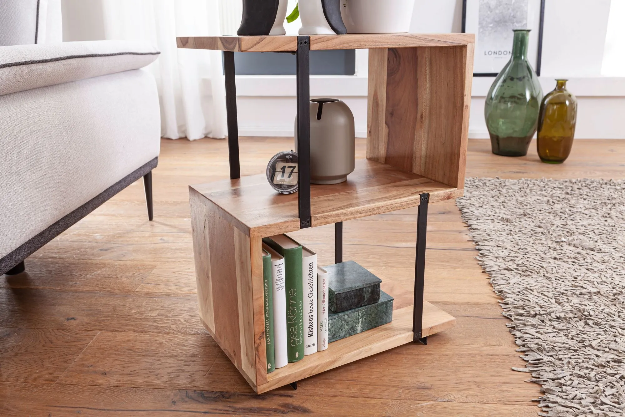 WOHNLING Beistelltisch WL5.971 S-Form 45x60x30cm Akazie Metall Ablagetisch