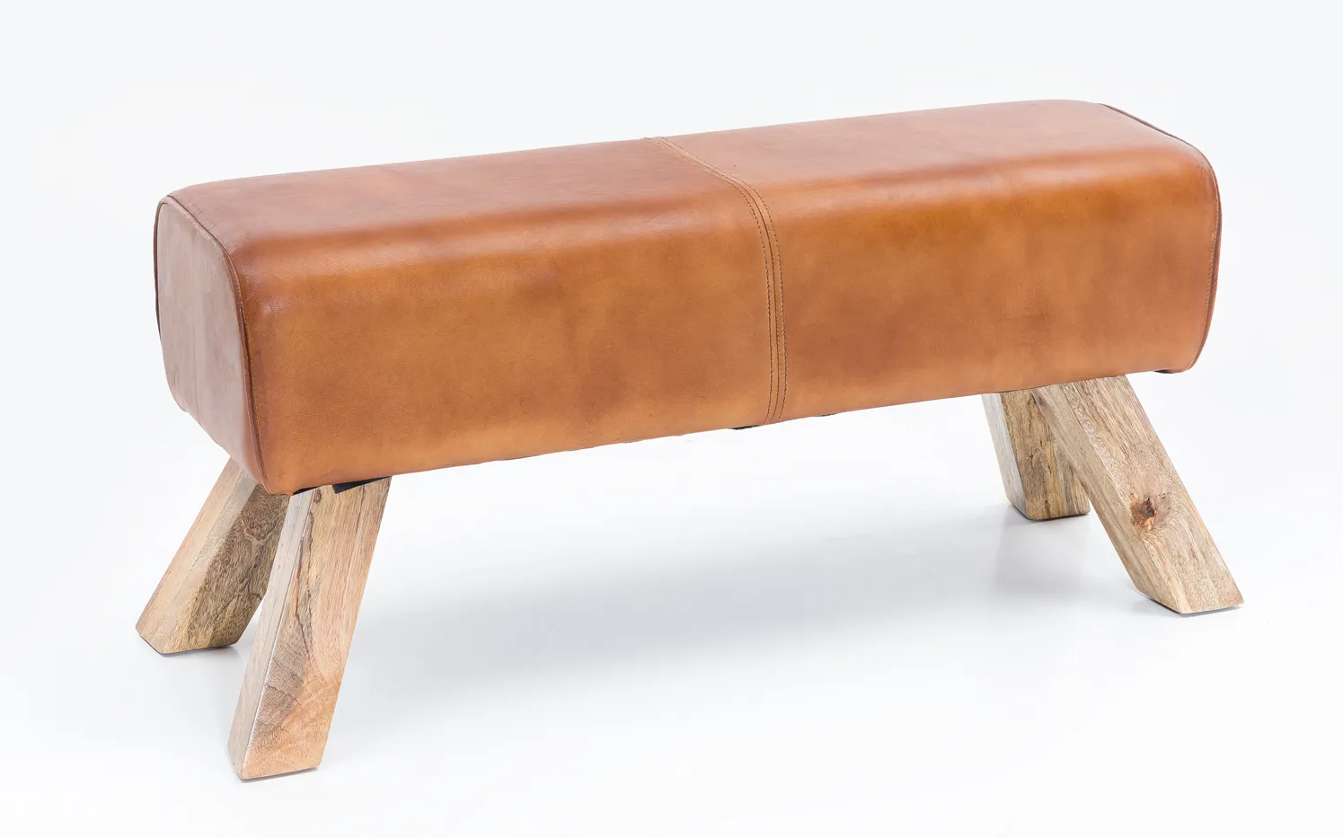 WOHNLING Design Sitzhocker WL5.105 Holz 90x30x43 cm Leder Modern Springbock | Lederhocker mit Holzbeinen | Massivholz Hocker mit Leder | Springbock Turnbank Gepolstert | Garderobenbank Echtes Leder