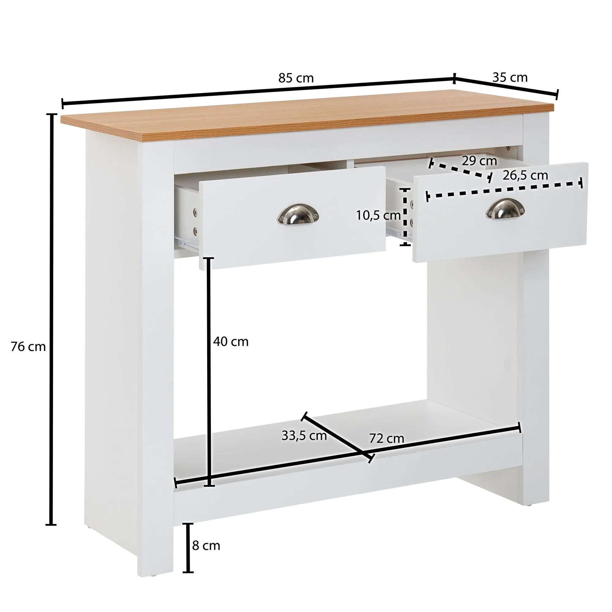Wohnling Konsolentisch WL6.386 Telefontisch 85x35x76 cm Weiß Eiche Design Anrichte Modern