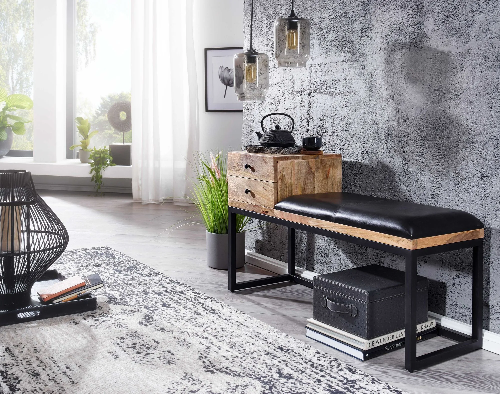 Wohnling Sitzbank WL6.483 Echtleder Holz massiv 100 cm Flurbank Stauraum Polsterbank Bank
