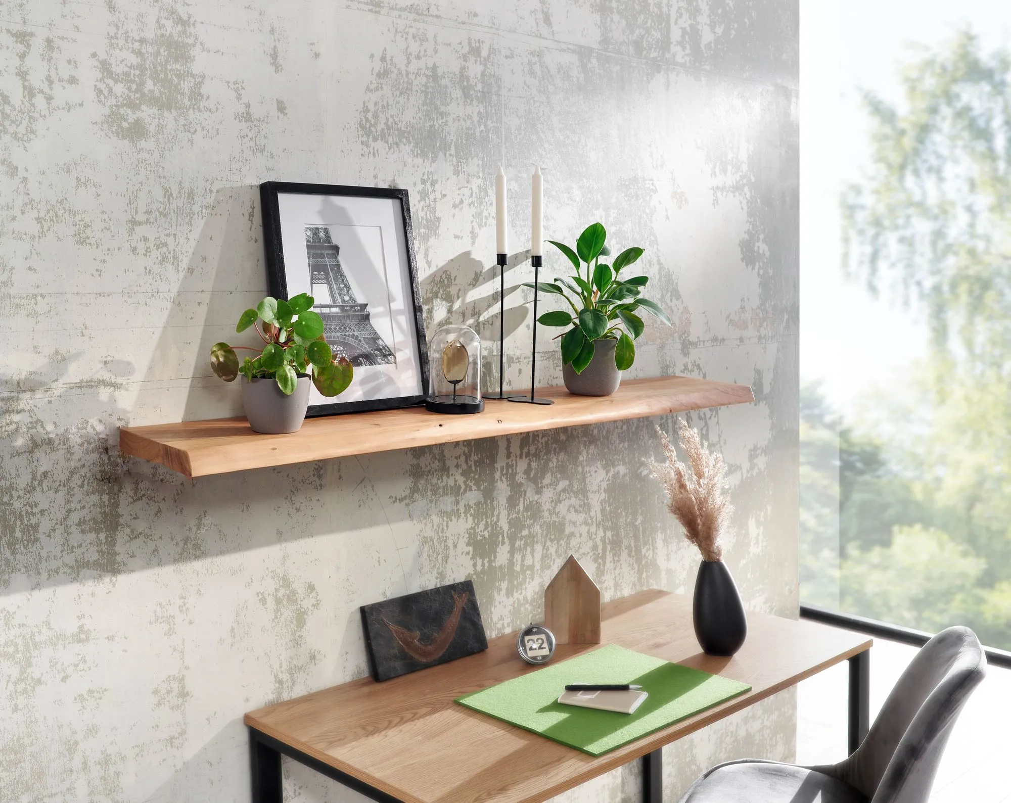 Wohnling Wandregal mit Baumkante Akazie Massivholz 140 cm