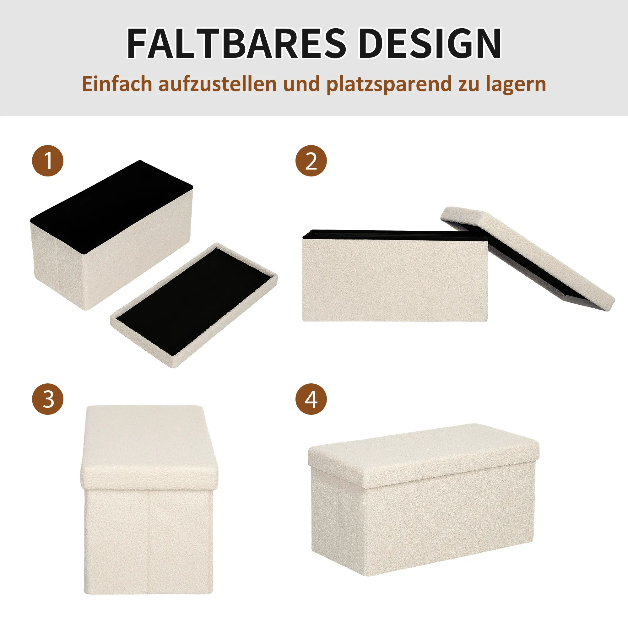 - Faltbares Design, einfach aufzubauen oder zusammenzuklappen, wenn der Sitzhocker mit Stauraum nicht gebraucht wird