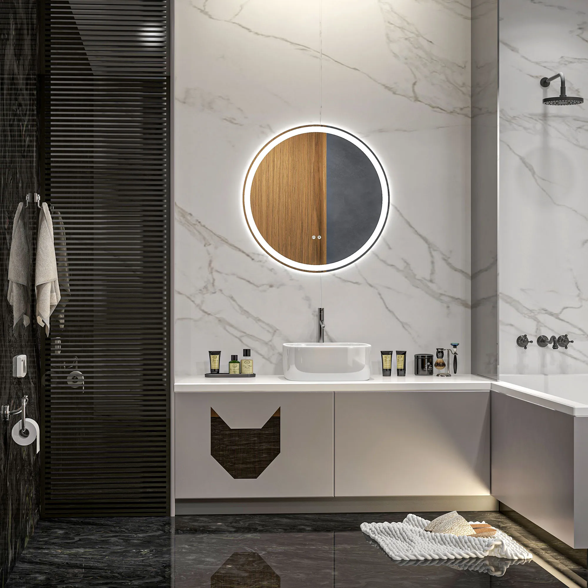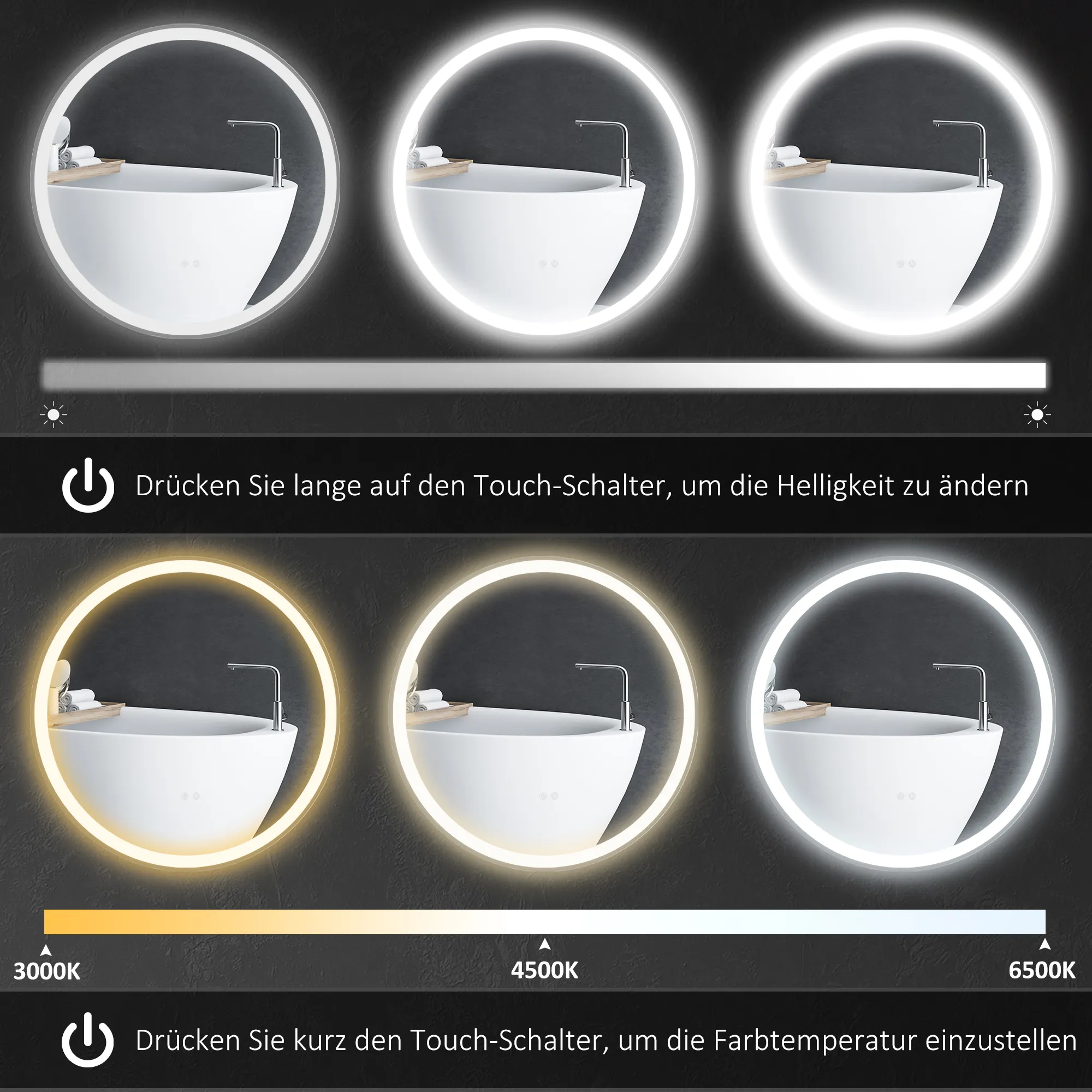 Badezimmerspiegel Badspiegel Runder Spiegel, LED- Licht, Touch-Funktion, kein Beschlagen, 60 x 60 cm