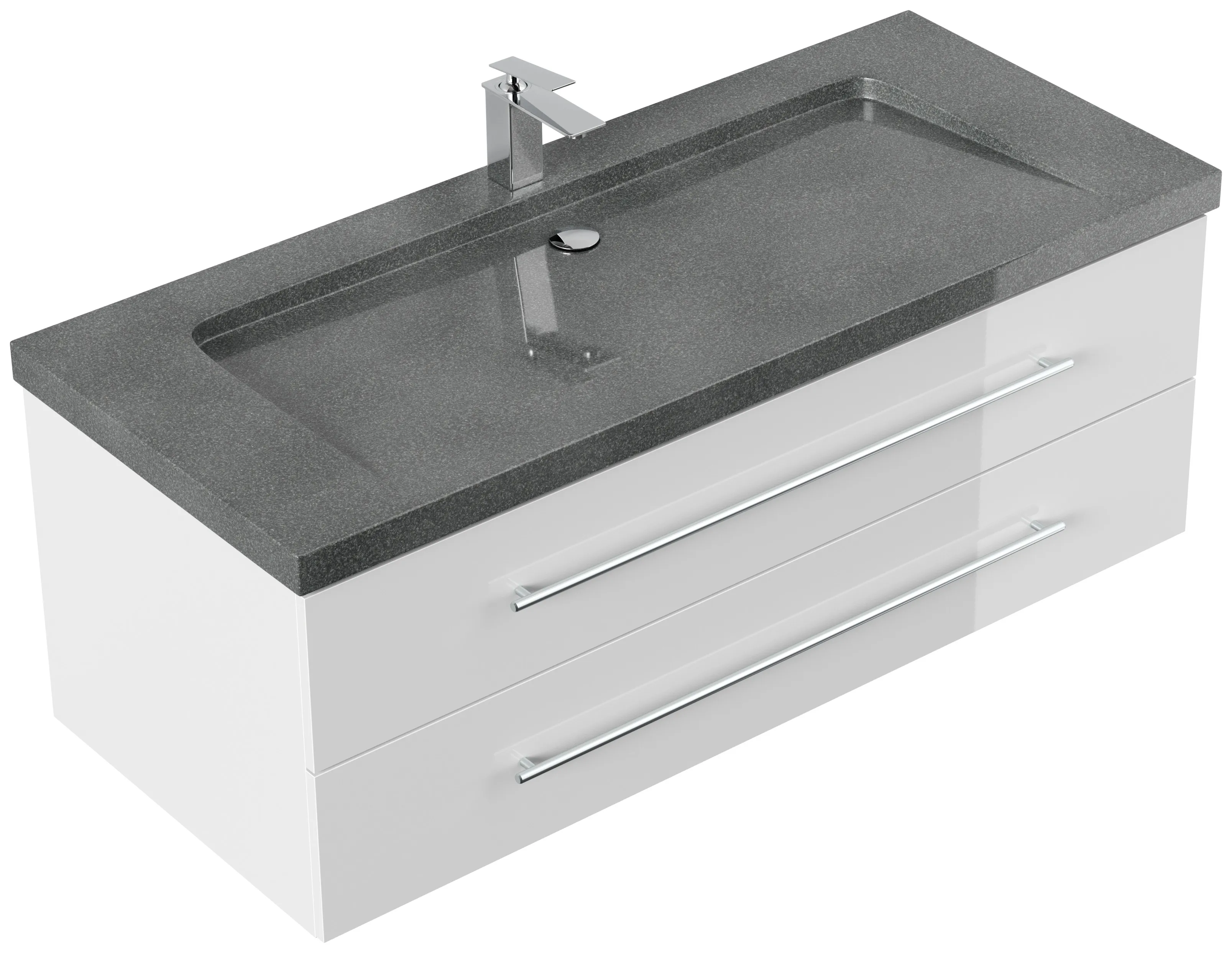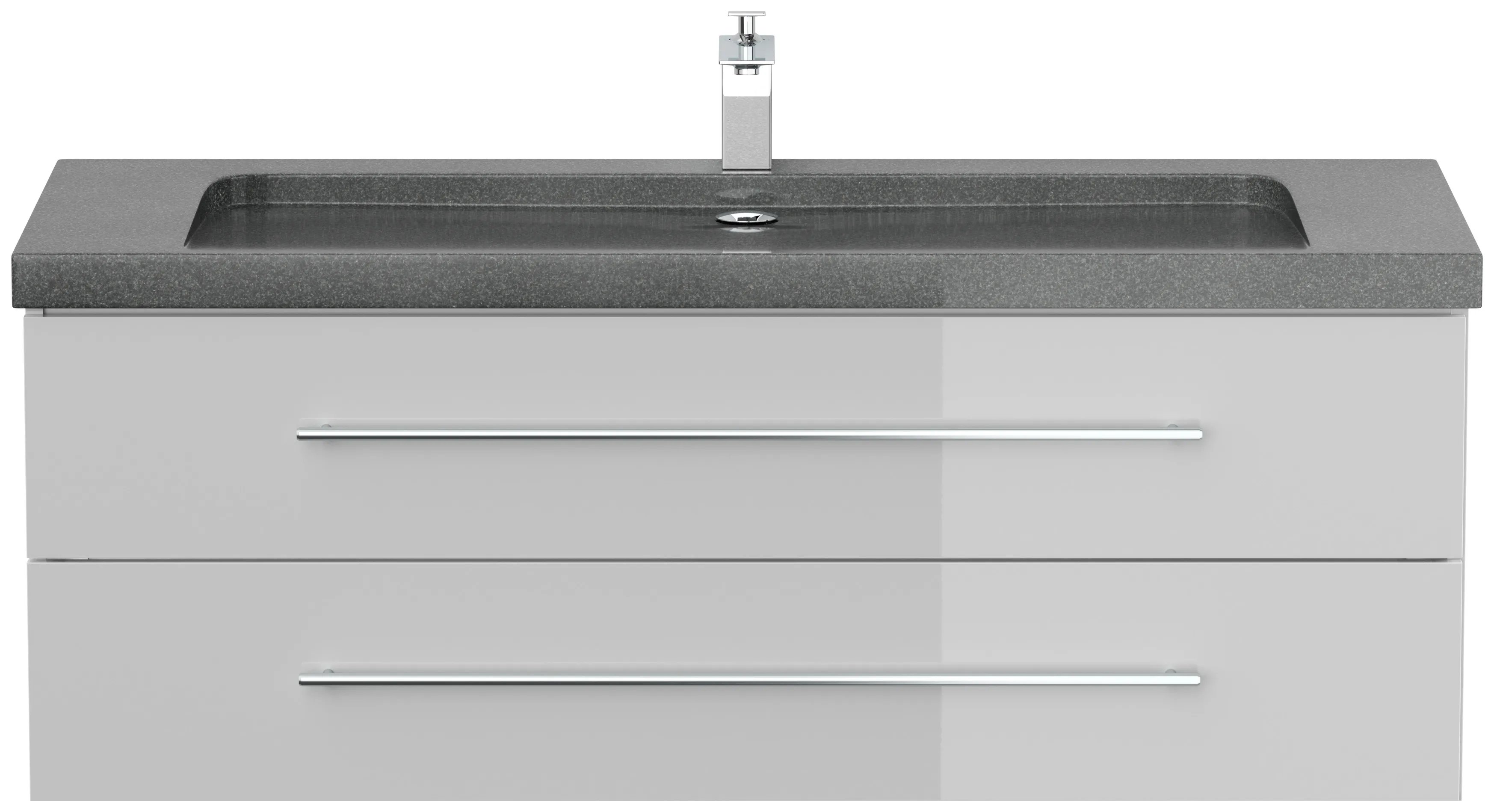 Badmöbel Granit G654 YAMO 130 cm 1 Hahnloch SoftClose weiß hochglanz