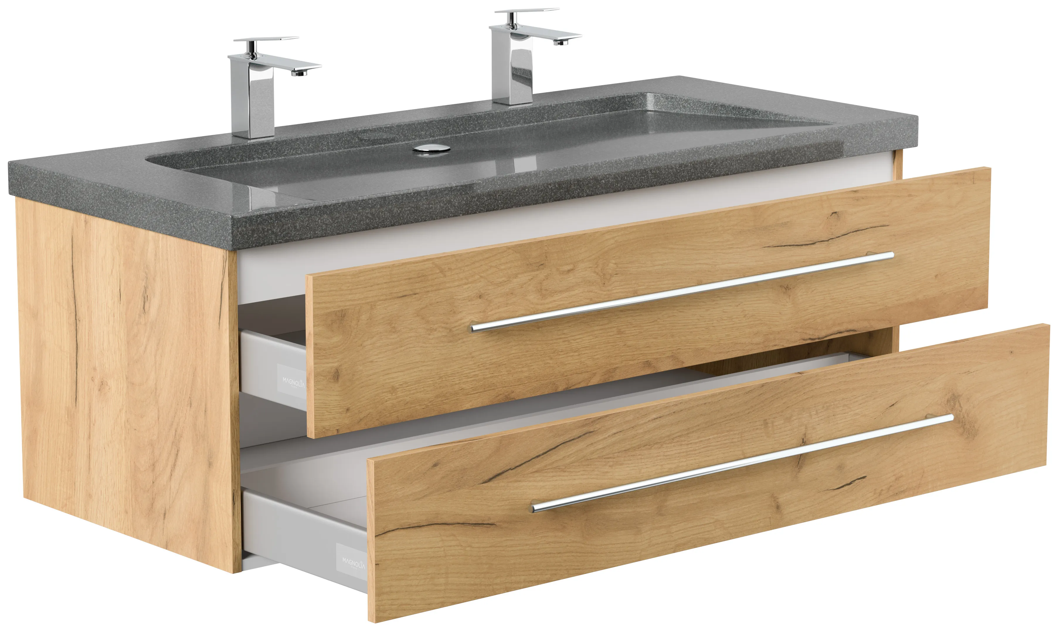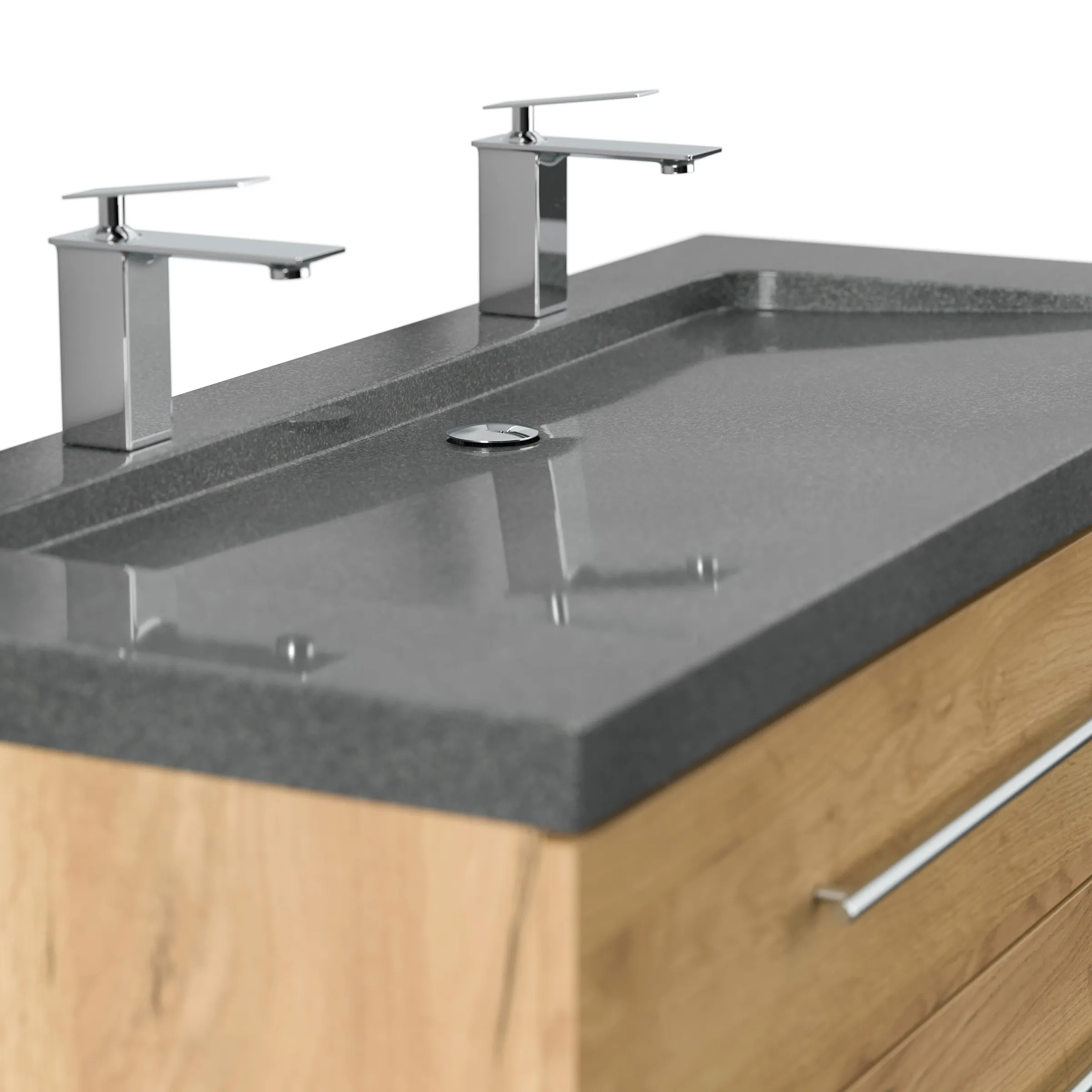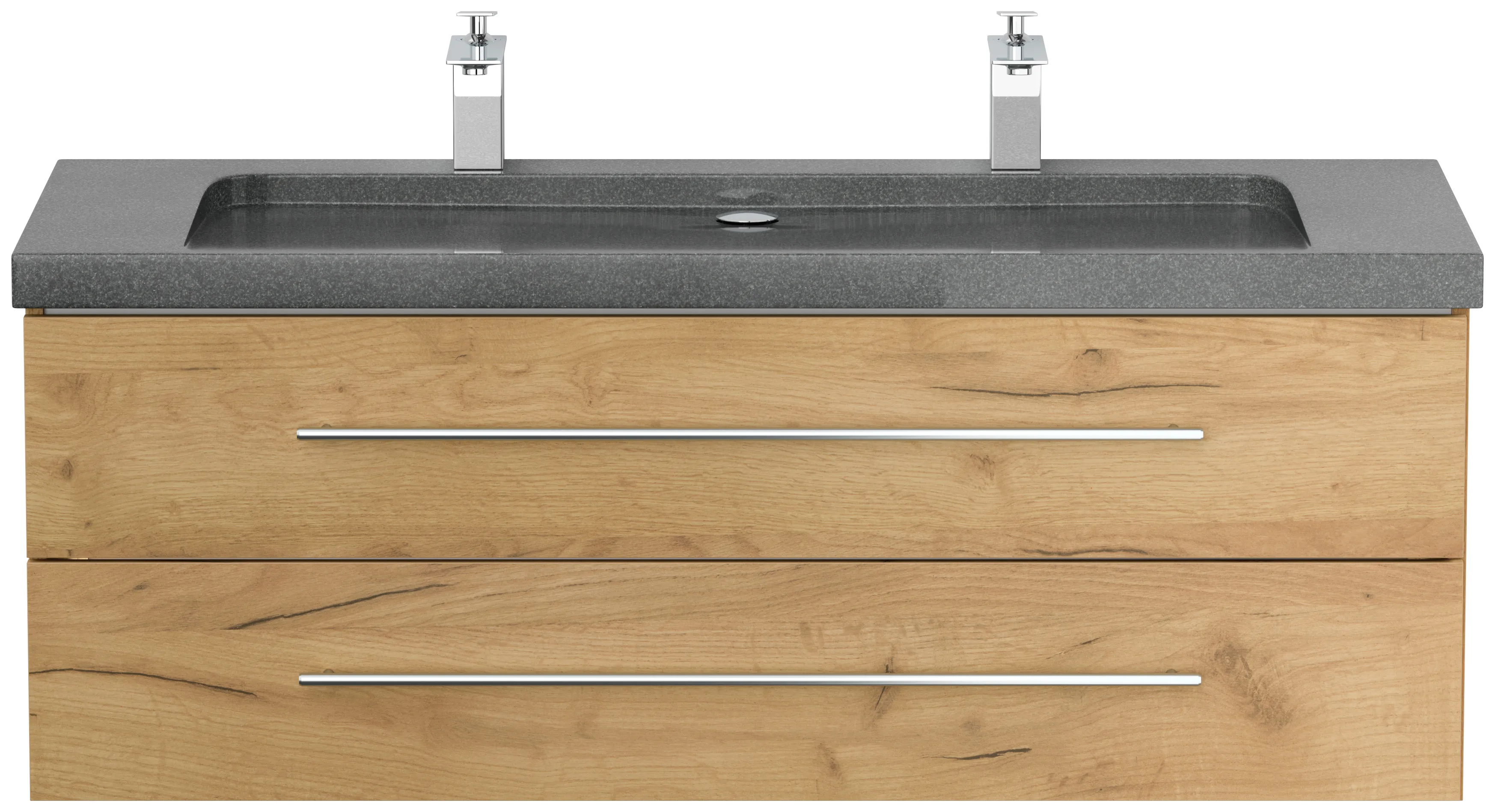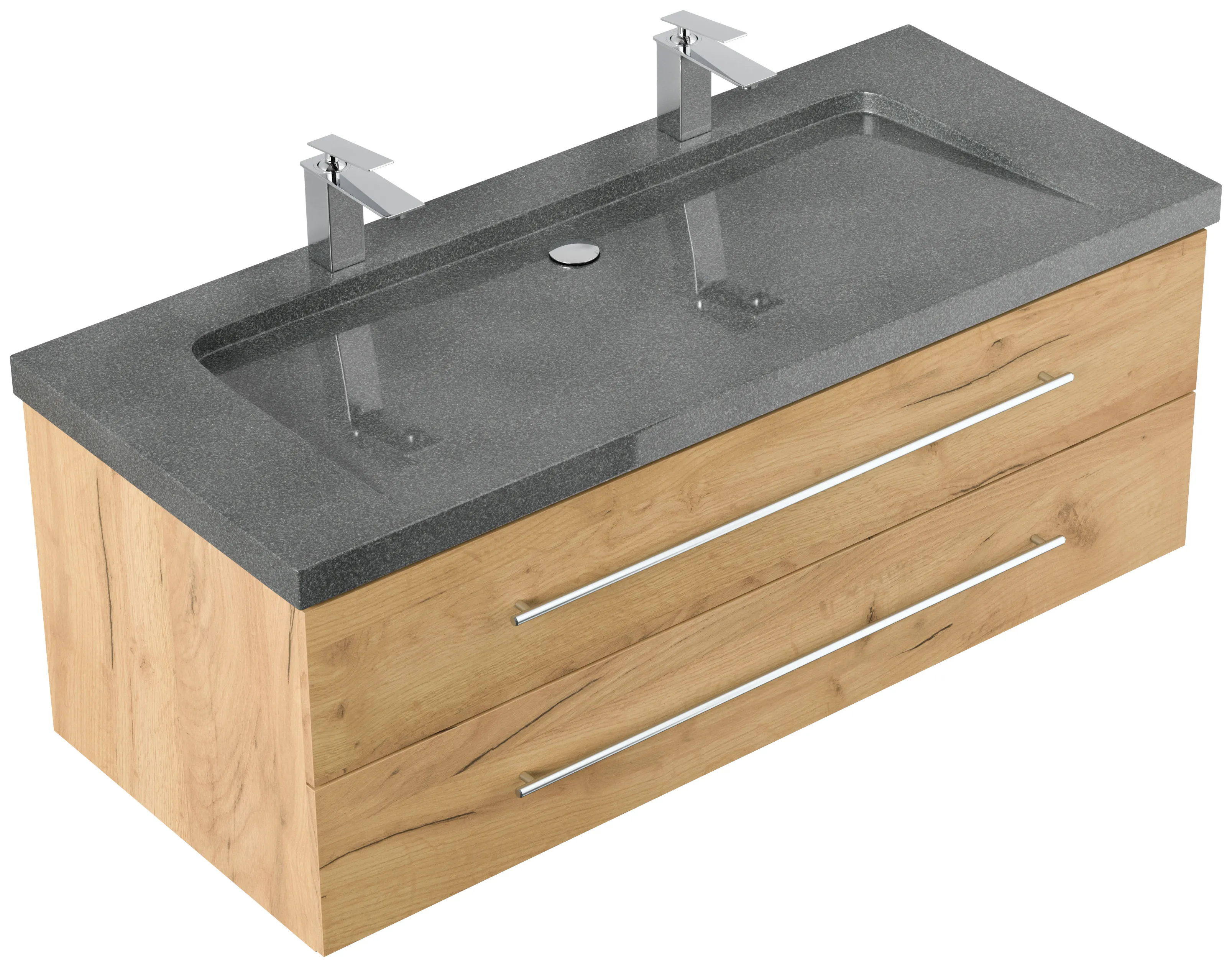 Badmöbel Granit G654 YAMO 130 cm 2 Hahnlöcher SoftClose eiche gold