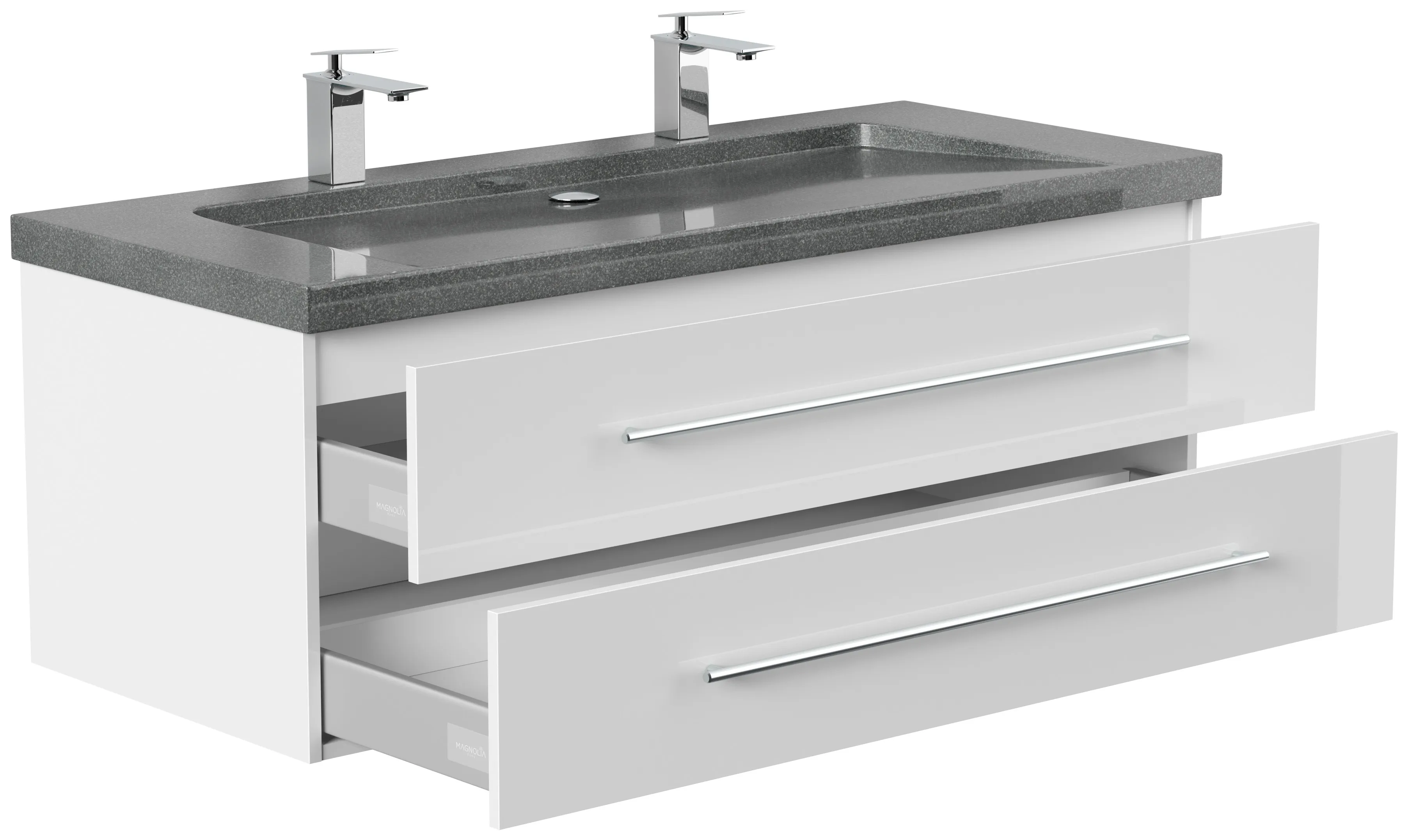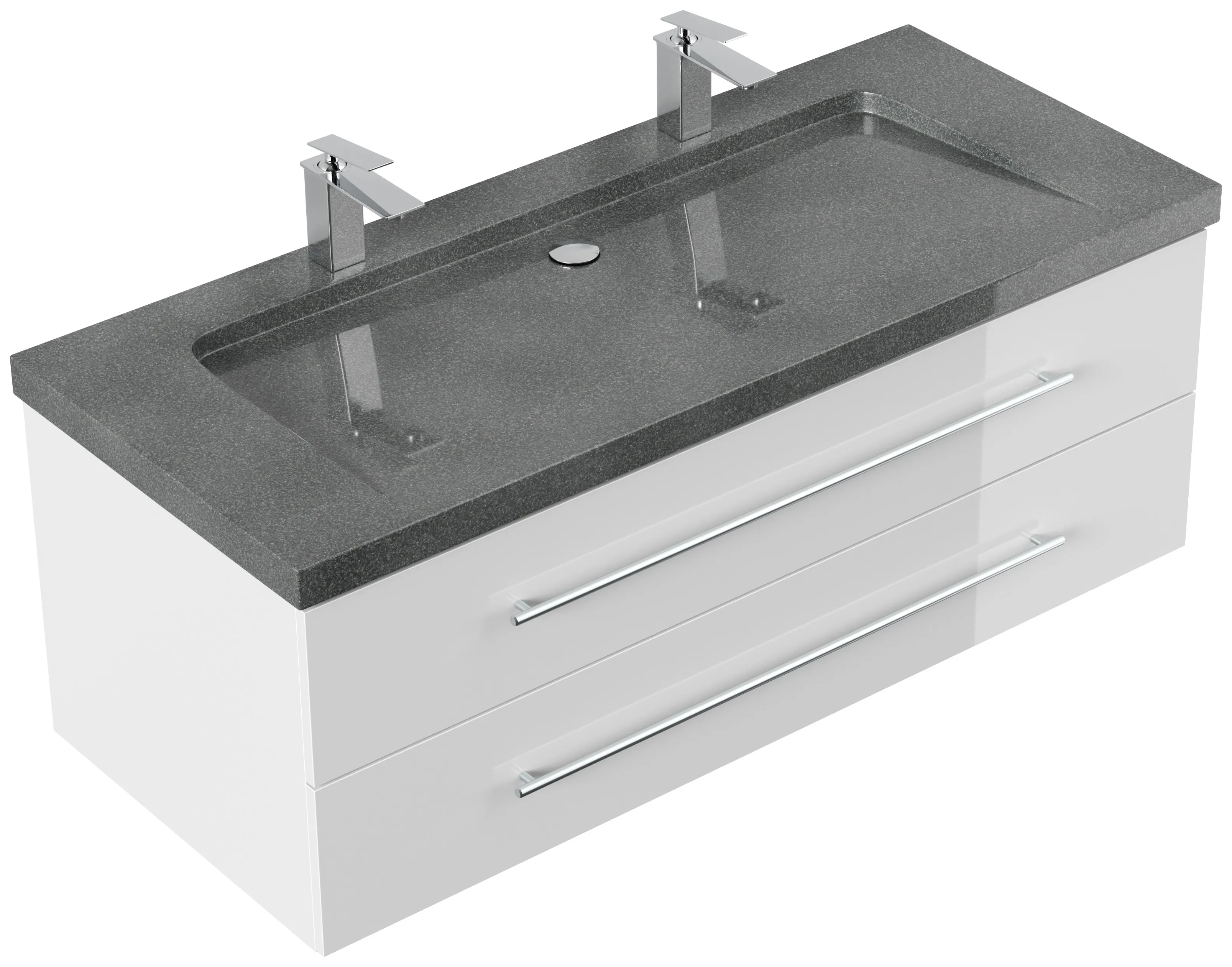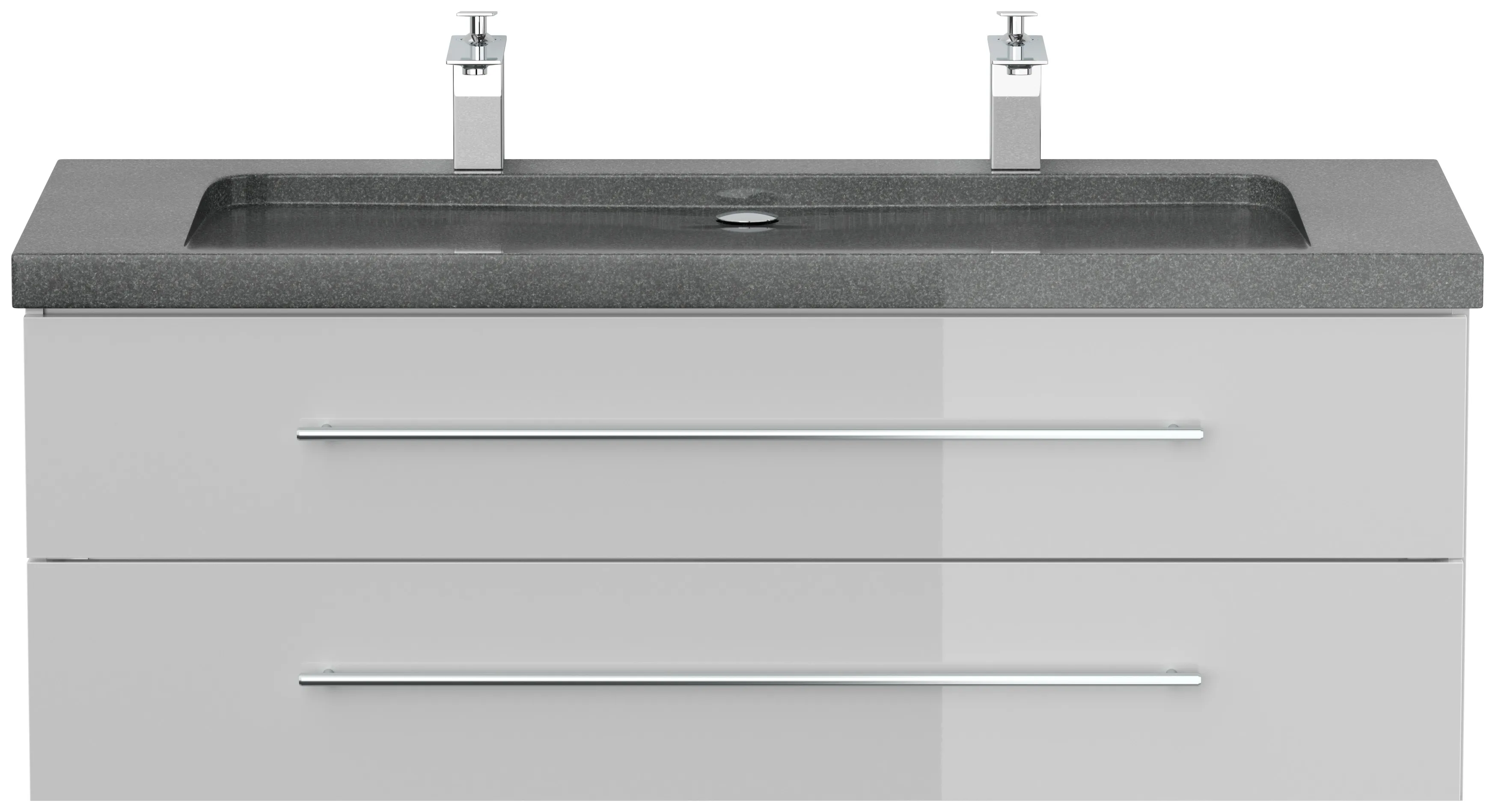 Badmöbel Granit G654 YAMO 130 cm 2 Hahnlöcher SoftClose weiß hochglanz