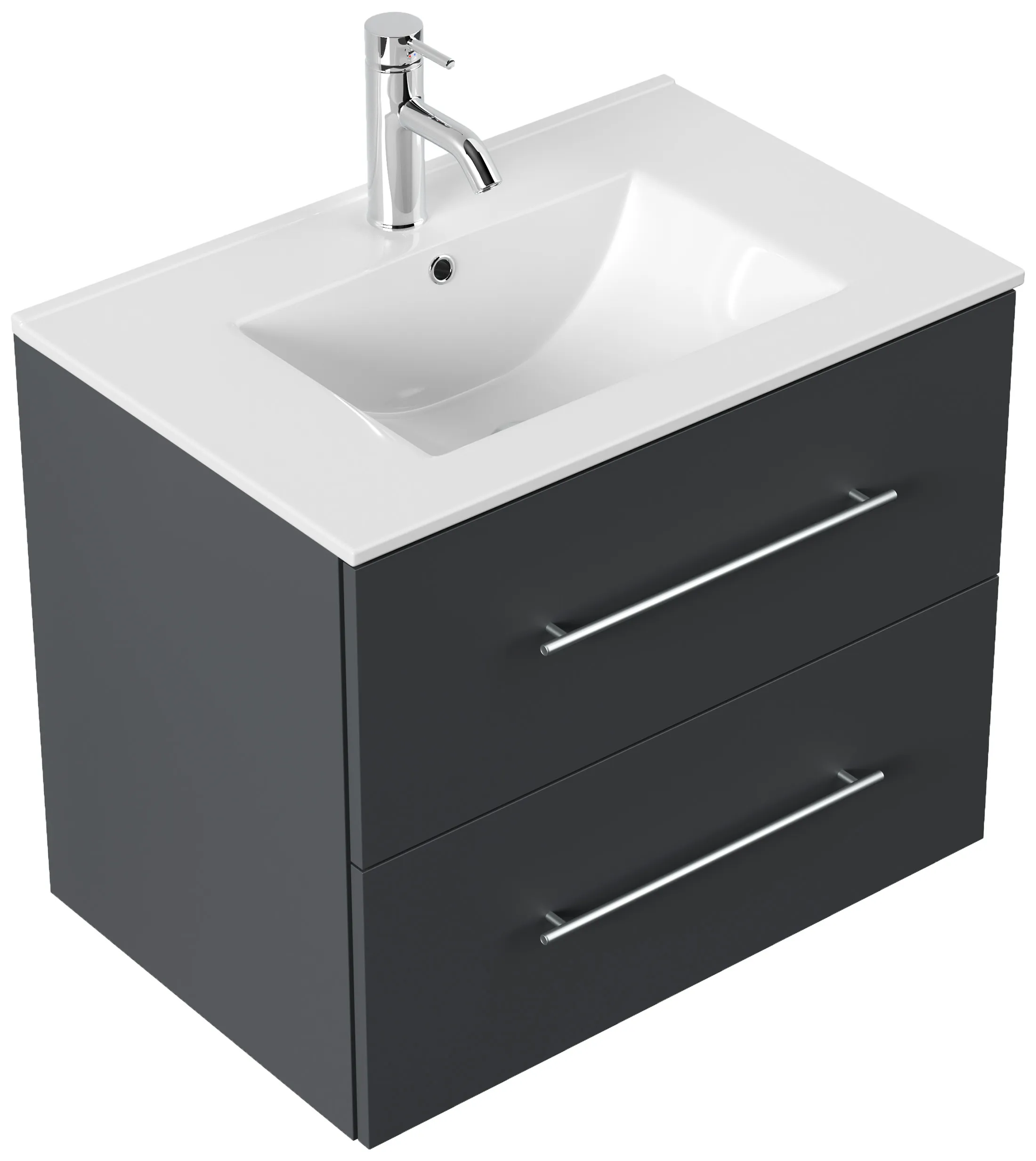 Badmöbel Waschtisch Unterschrank mit Keramik Waschbecken, 2 Schubladen mit Softclose (B/H/T) 71/53,8/46,5 cm.