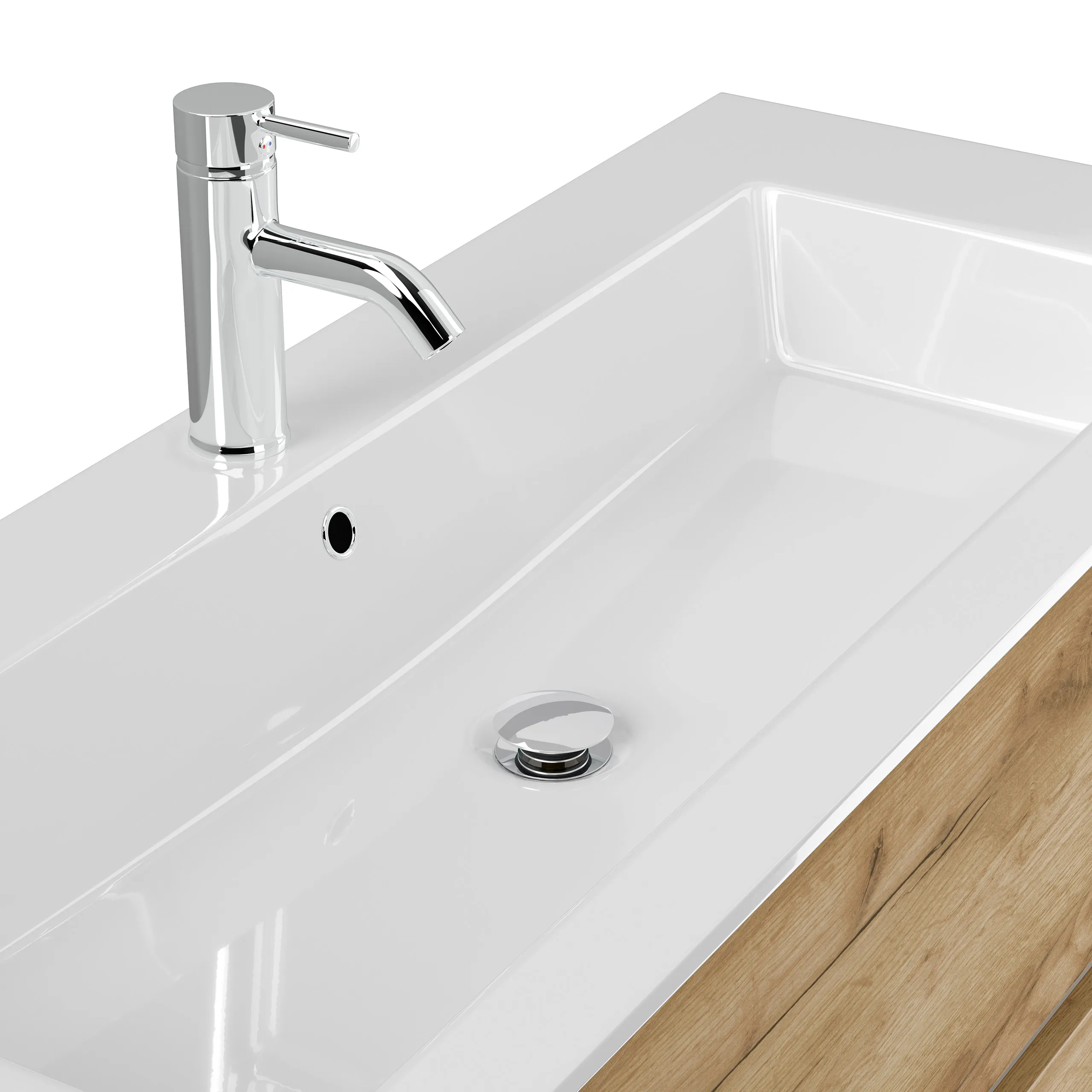 Nicht im Lieferumfang enthalten sind beispielsweise Deko, Spiegel, Armatur, Zuleitungen zum Wasserhahn, der Siphon sowie in der Regel ebenfalls nicht der Waschbeckenverschluss Popup.
