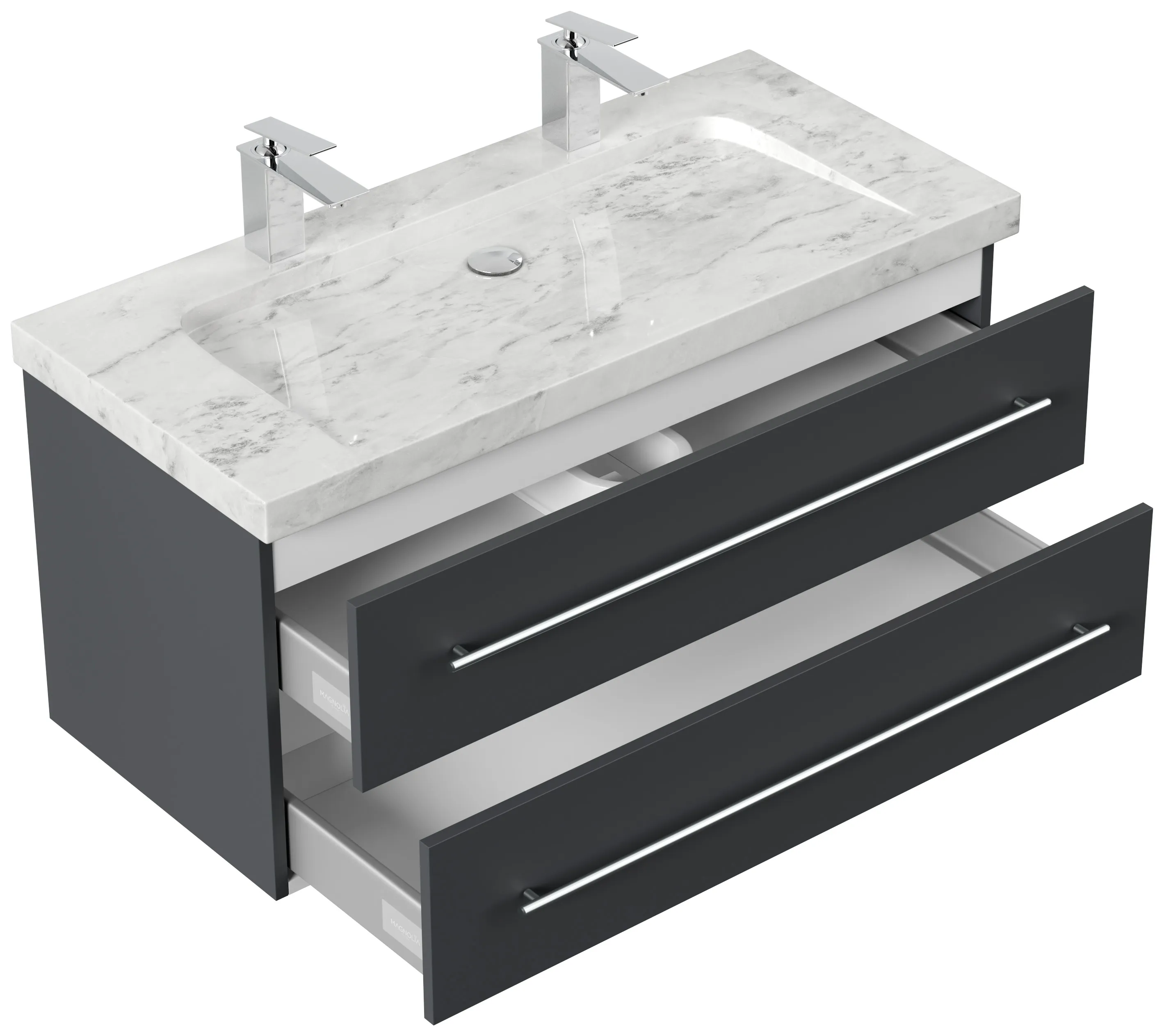 Badmöbel Marmor Carrara White YAMO 100 cm 2 Hahnlöcher SoftClose grafit
