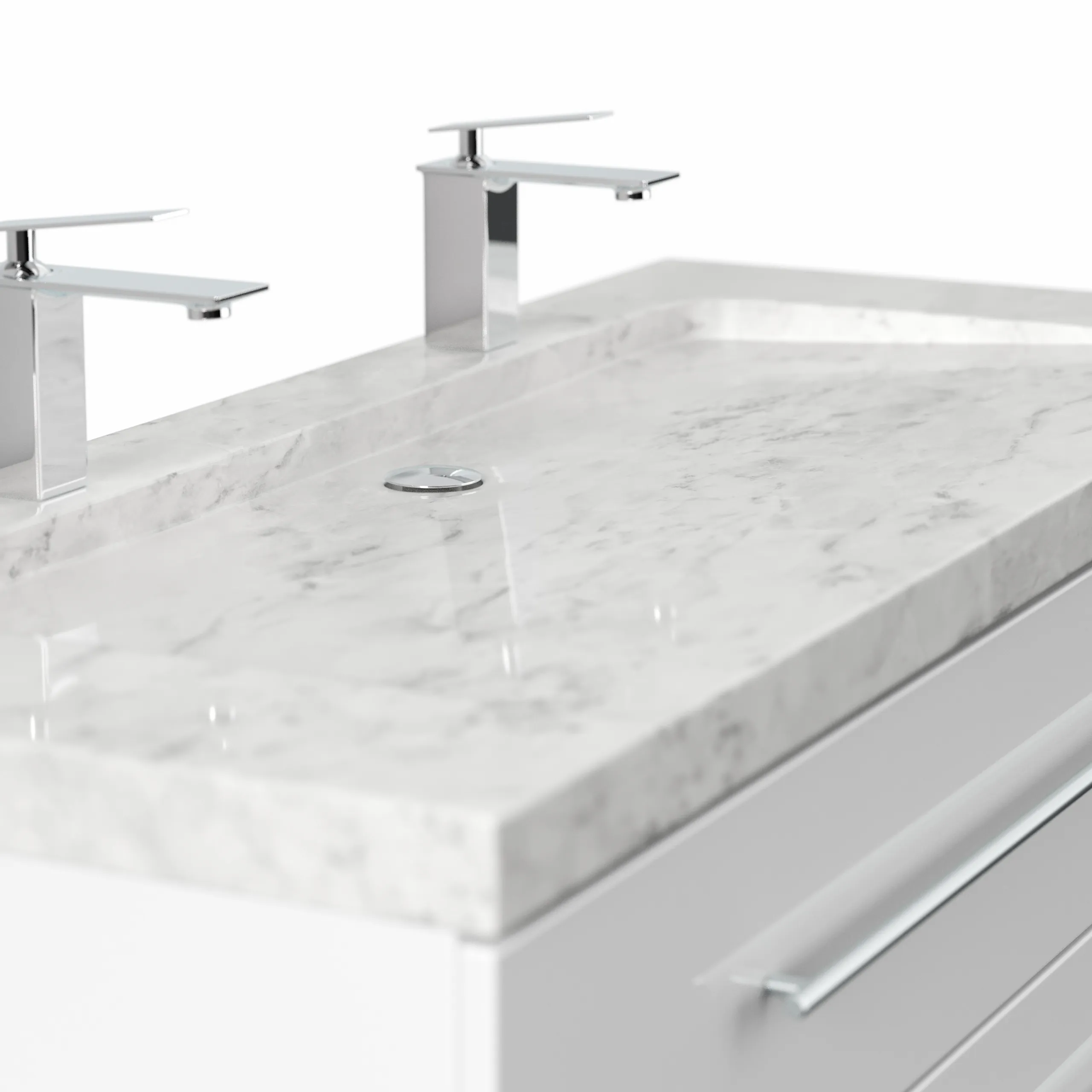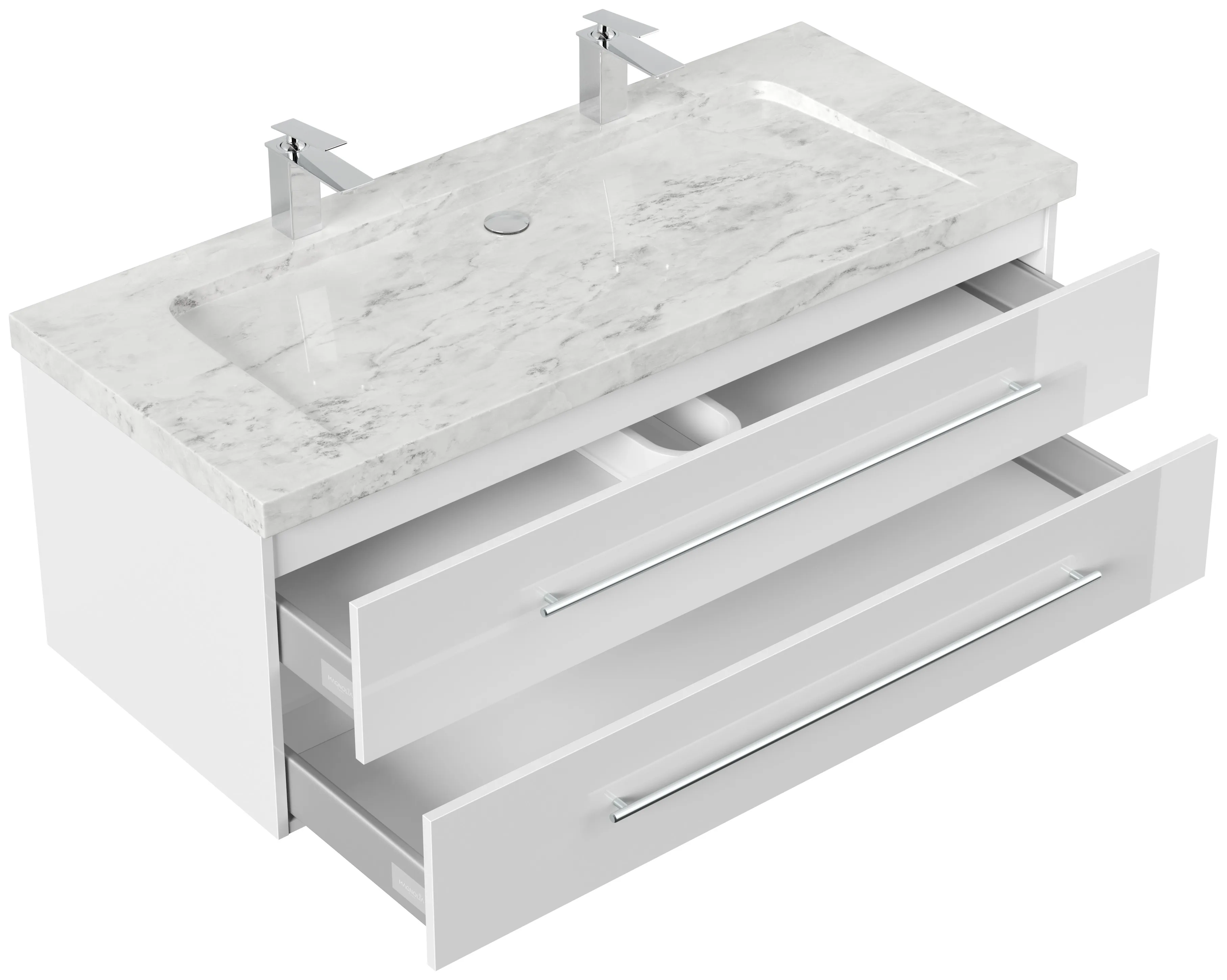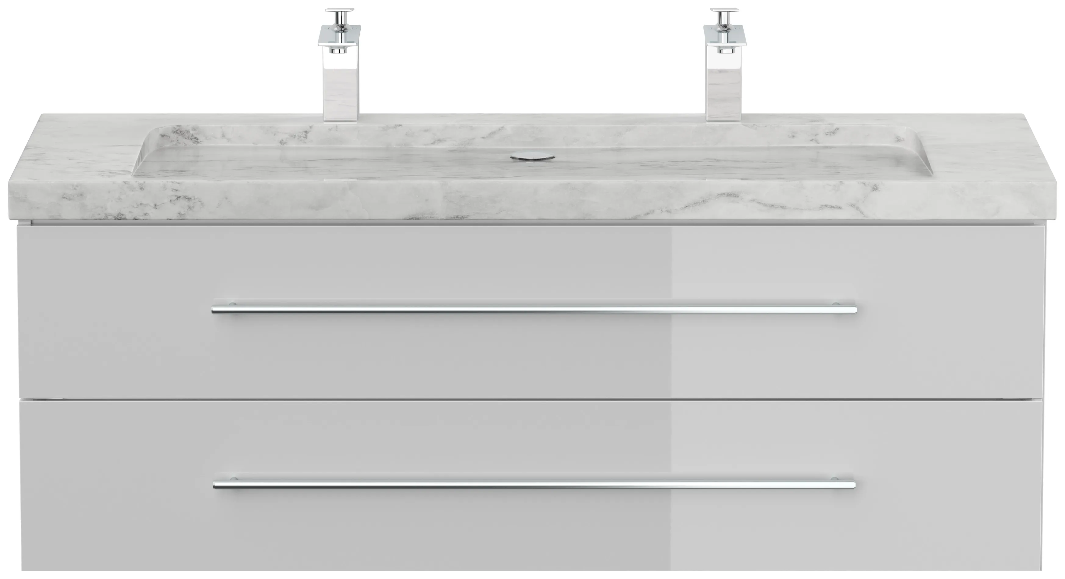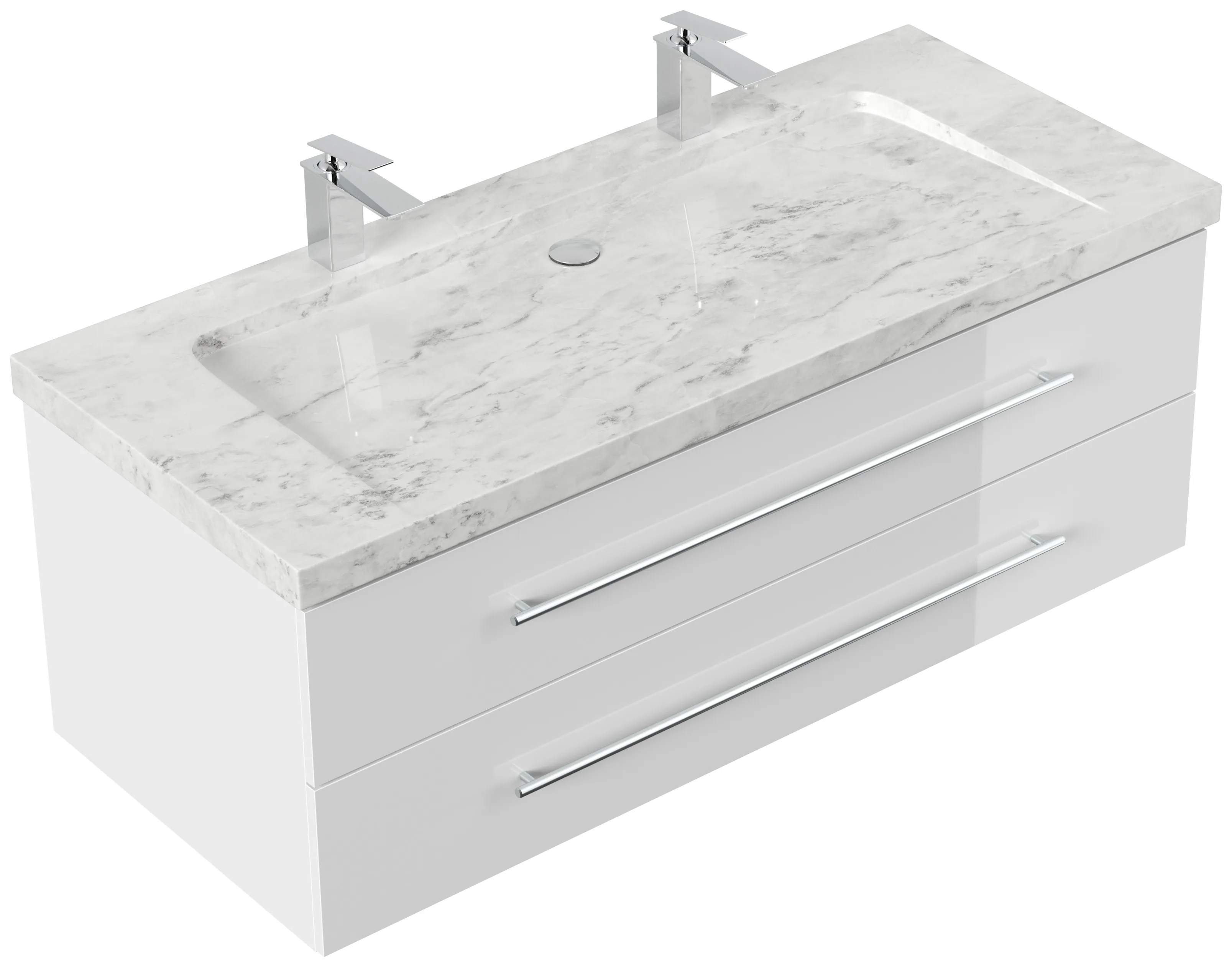 Badmöbel Marmor Carrara White YAMO 130 cm 2 Hahnlöcher SoftClose weiß hochglanz