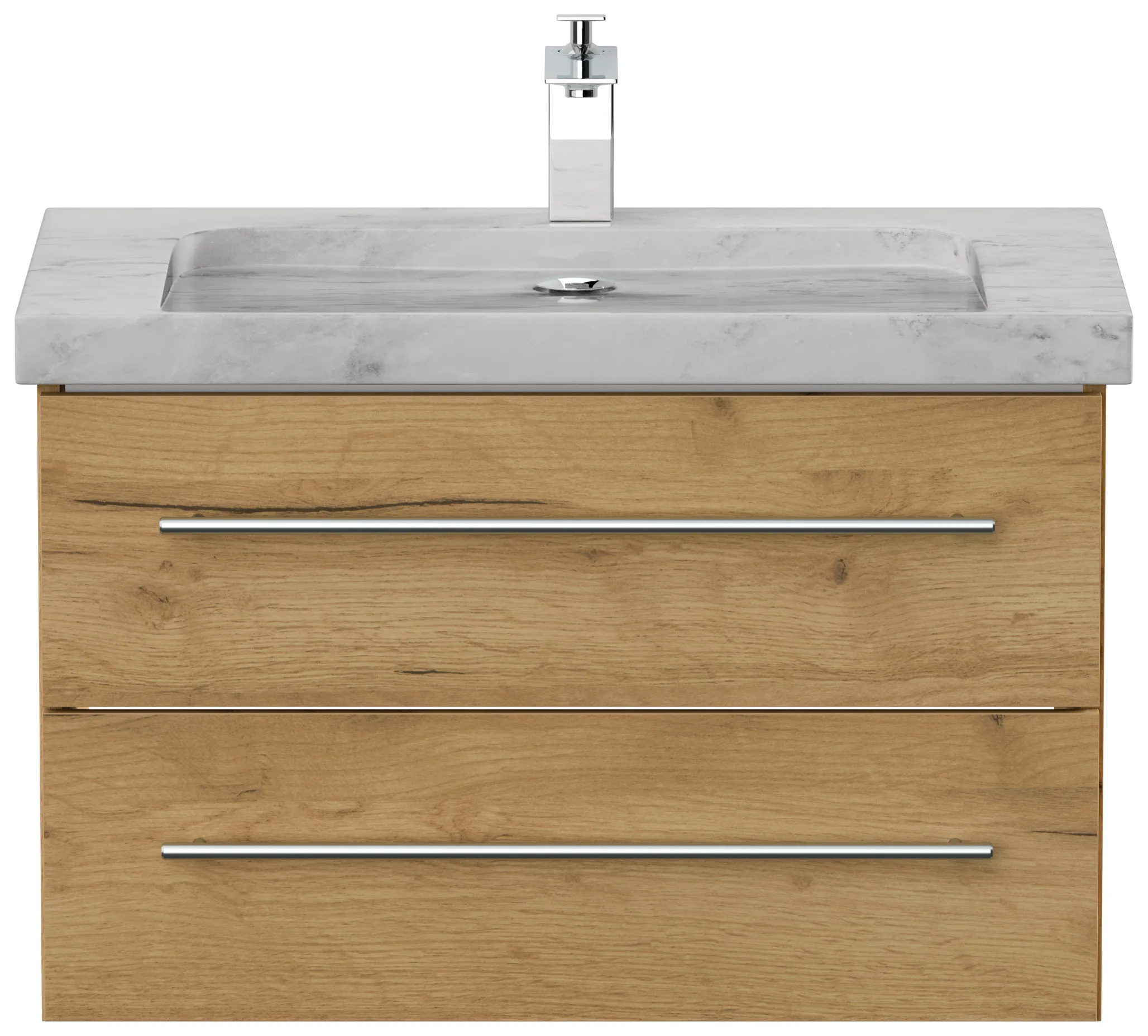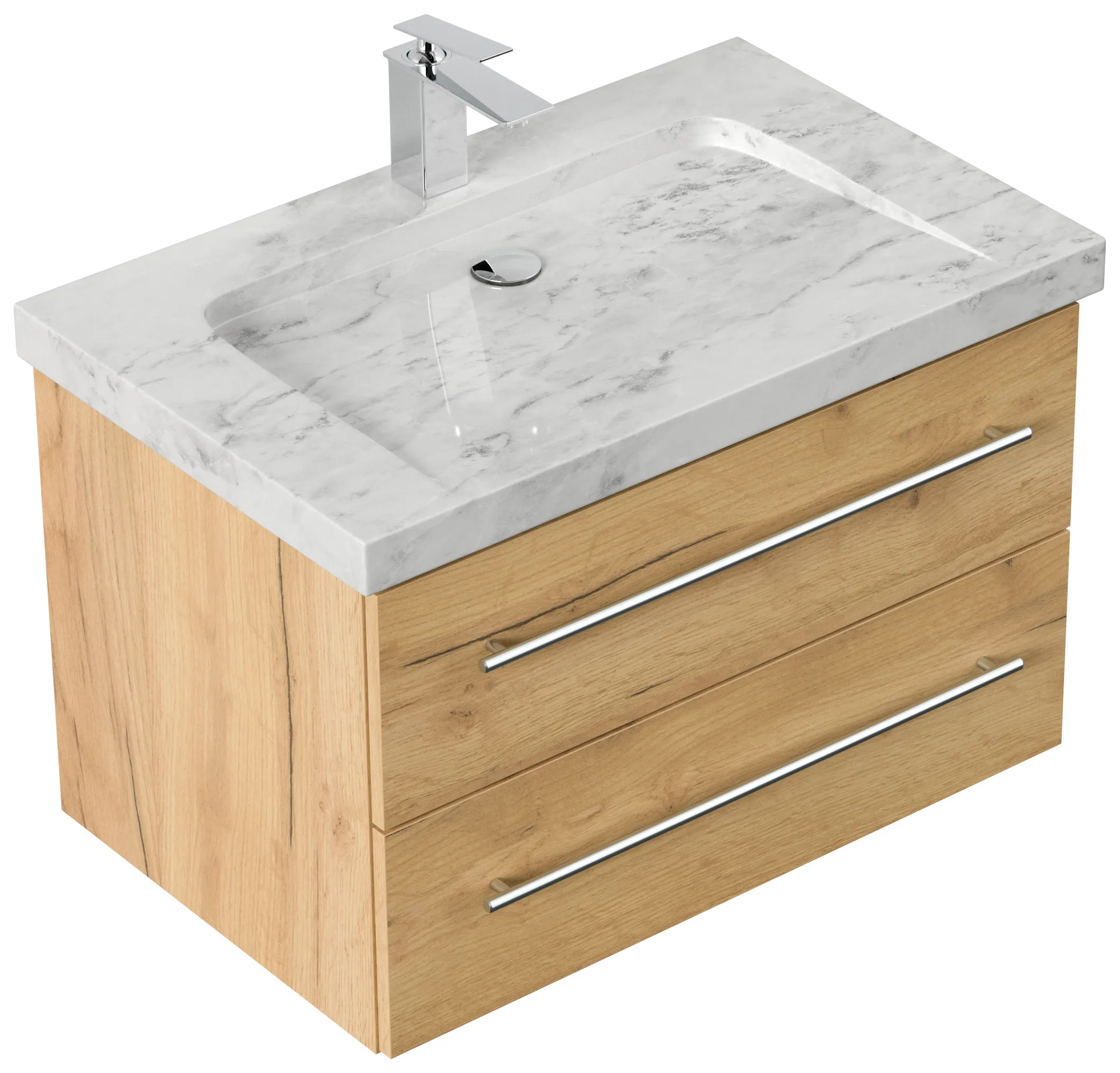Badmöbel Marmor Carrara White YAMO 75 cm 1 Hahnloch SoftClose eiche gold