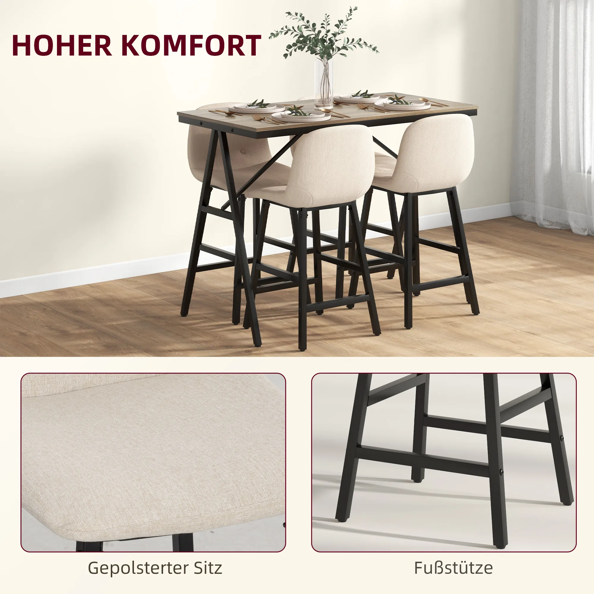 Verwandeln Sie Ihren Raum in ein einladendes Esszimmer mit dem 5-teiligen -Bartisch-Set. Diese Essgruppe bietet Ihnen eine stilvolle und gemütliche Lösung für tägliche Mahlzeiten, Spieleabende oder Arbeitsstunden. Das moderne Industrie-Design der Essgruppe fügt sich nahtlos in jeden Raum ein und schafft eine warme Atmosphäre. Ideal für kleine Räume, bietet es zusätzliche Sitzgelegenheiten und verwandelt Ihr Zuhause in einen Ort der Geselligkeit und Entspannung.