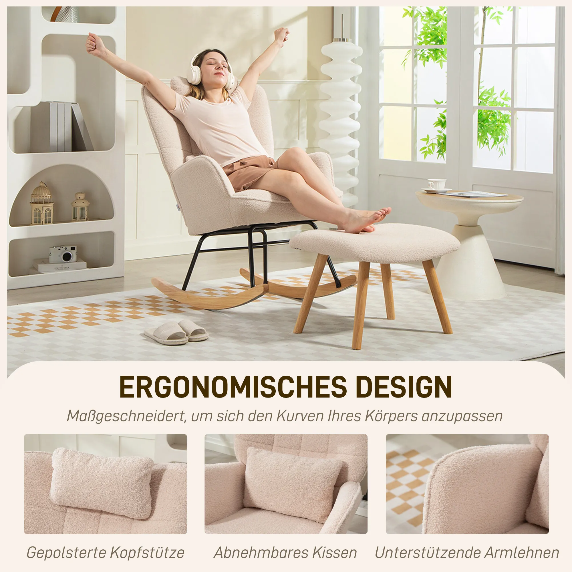 Beiger Schaukelstuhl 70,5B x 101,5T x 99,5H cm mit Fußhocker