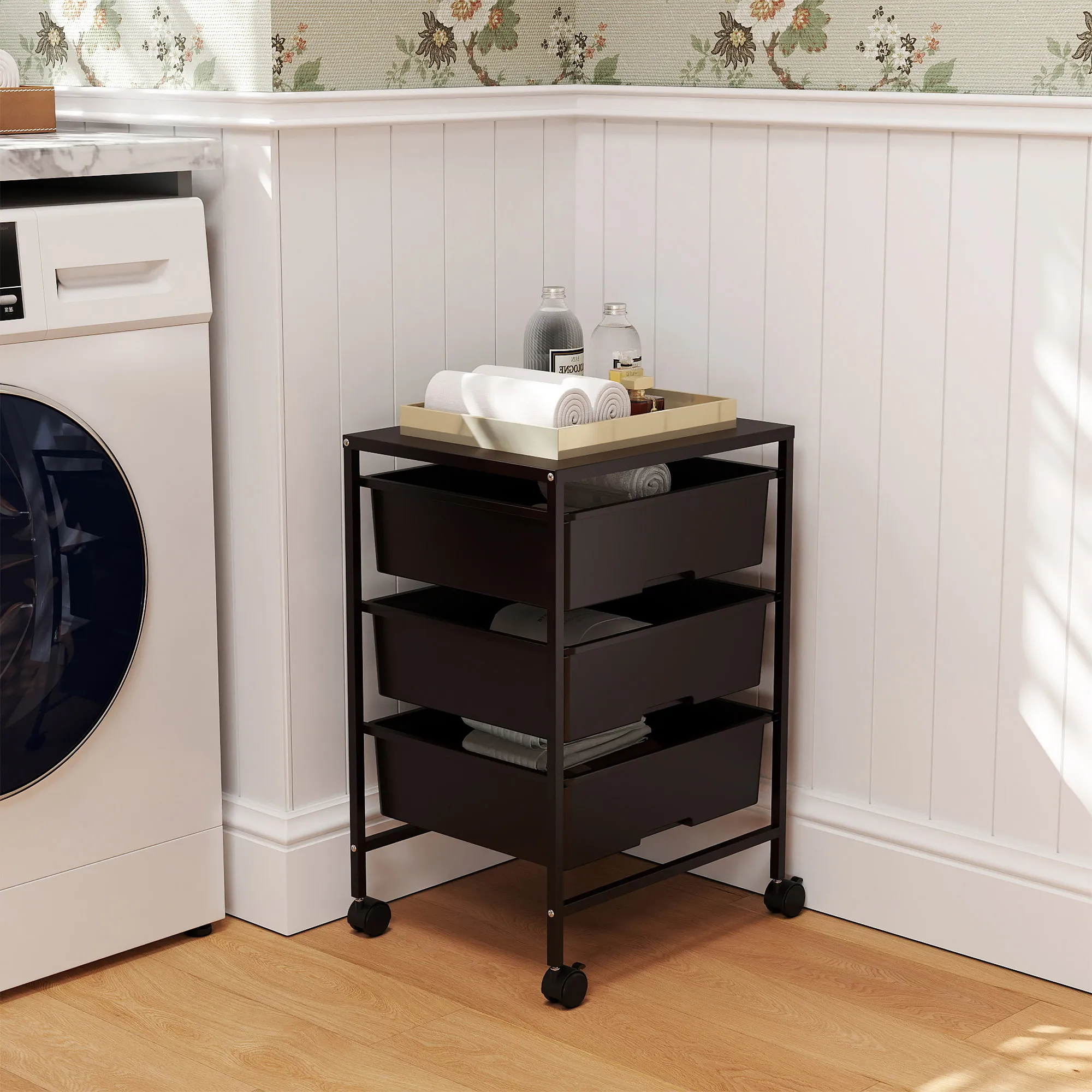 Beistellwagen mit Rädern, 3 Körbe für Transport und Aufbewahrung, Küchenwagen, 40,8L x 33,5B x 60,5H cm, Schwarz