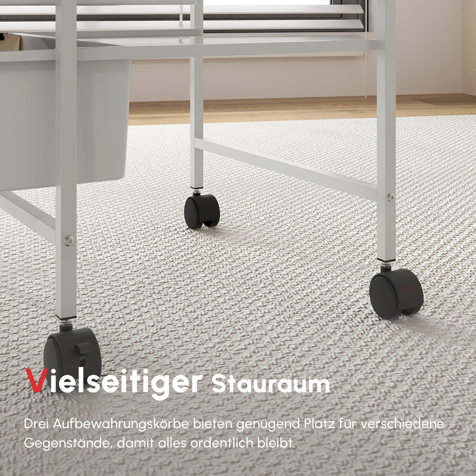 Beschreibung:- Dieser Beistellwagen mit Rädern verfügt über drei Aufbewahrungskörbe, um zahlreiche Dinge ordentlich zu verstauen
