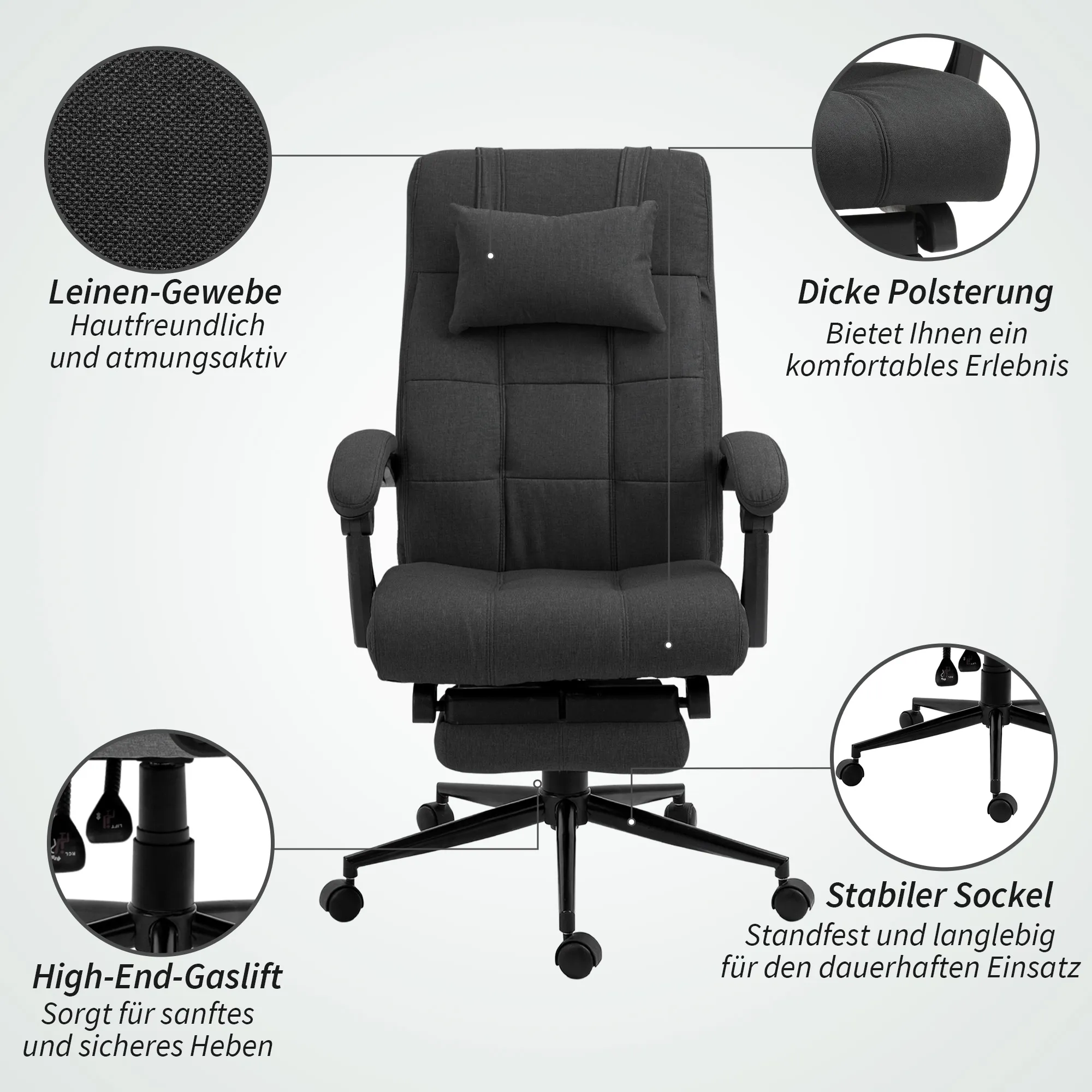 - Kopfstütze für eine zusätzliche Unterstützung, ideal für langes Sitzen und Arbeiten
