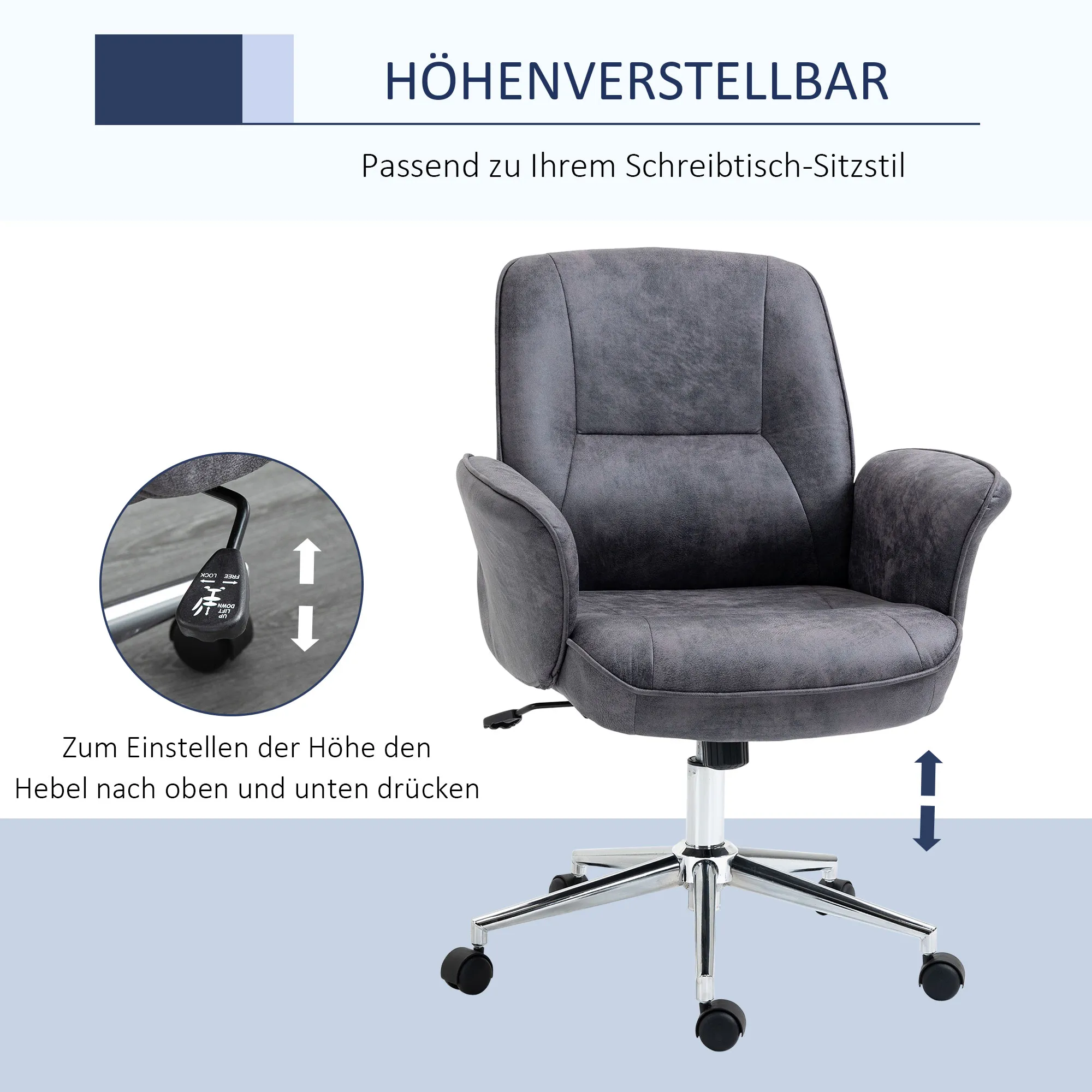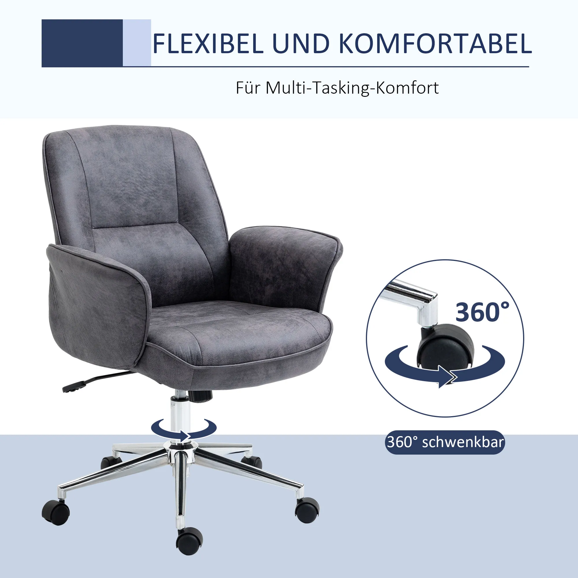 - Leichtgängige Räder und frei rotierbares Drehkreuz des Drehstuhls mit Rollen bieten hohe Bewegungsfreiheit