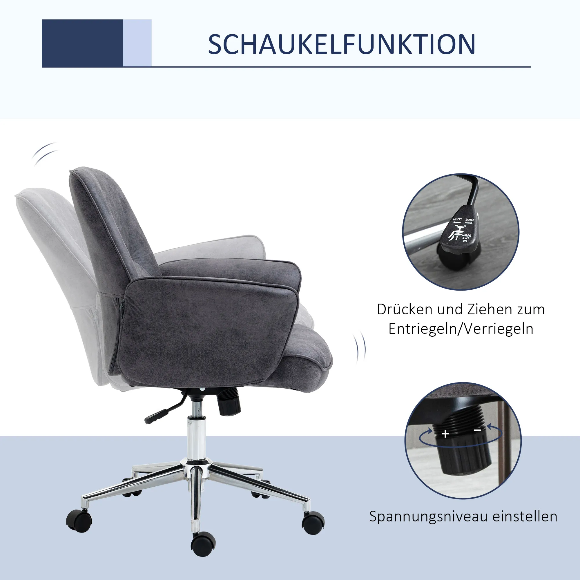 Bürostuhl, Schreibtischstuhl, höhenverstellbar, Wippfunktion, drehbar, Stahl, dunkelgrau, 67 x 69 x 102cm