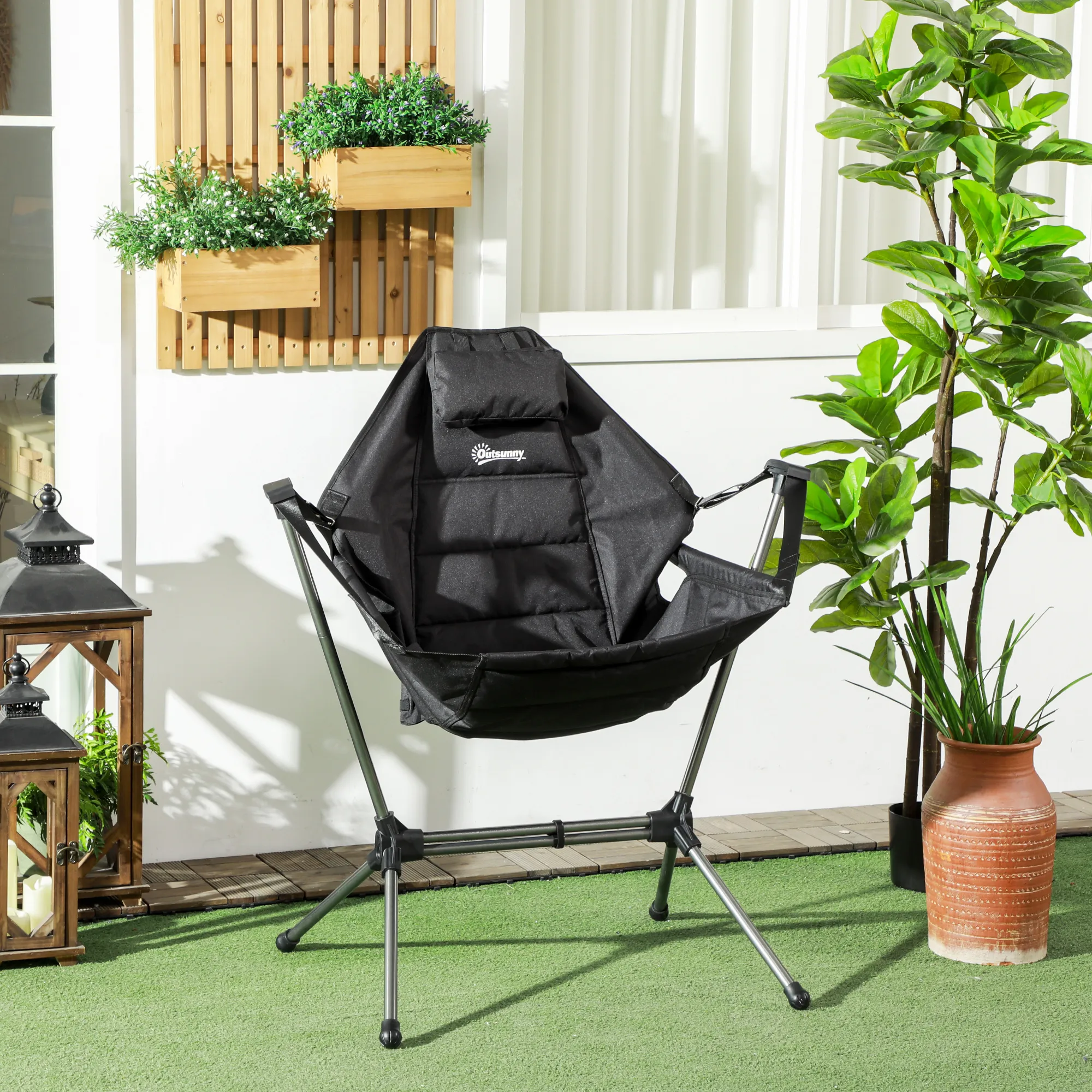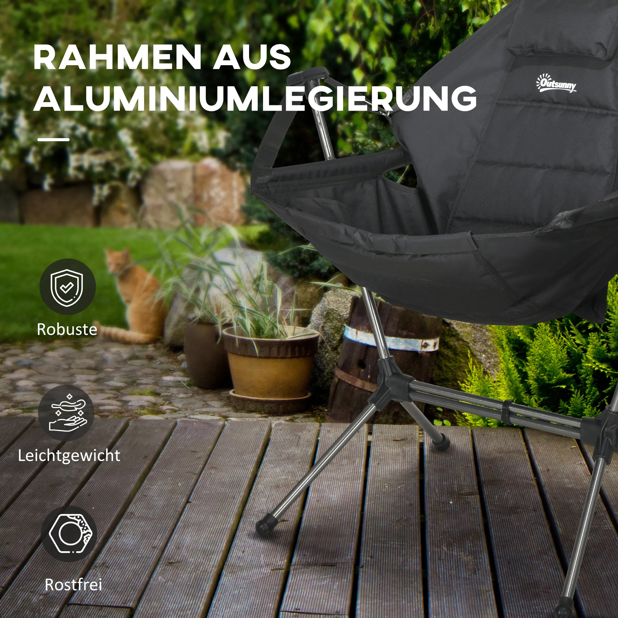 Camping-Schaukelstuhl, faltbar, verstellbare Rückenlehne, Aluminiumrahmen, 54 x 100 x 101cm, Schwarz
