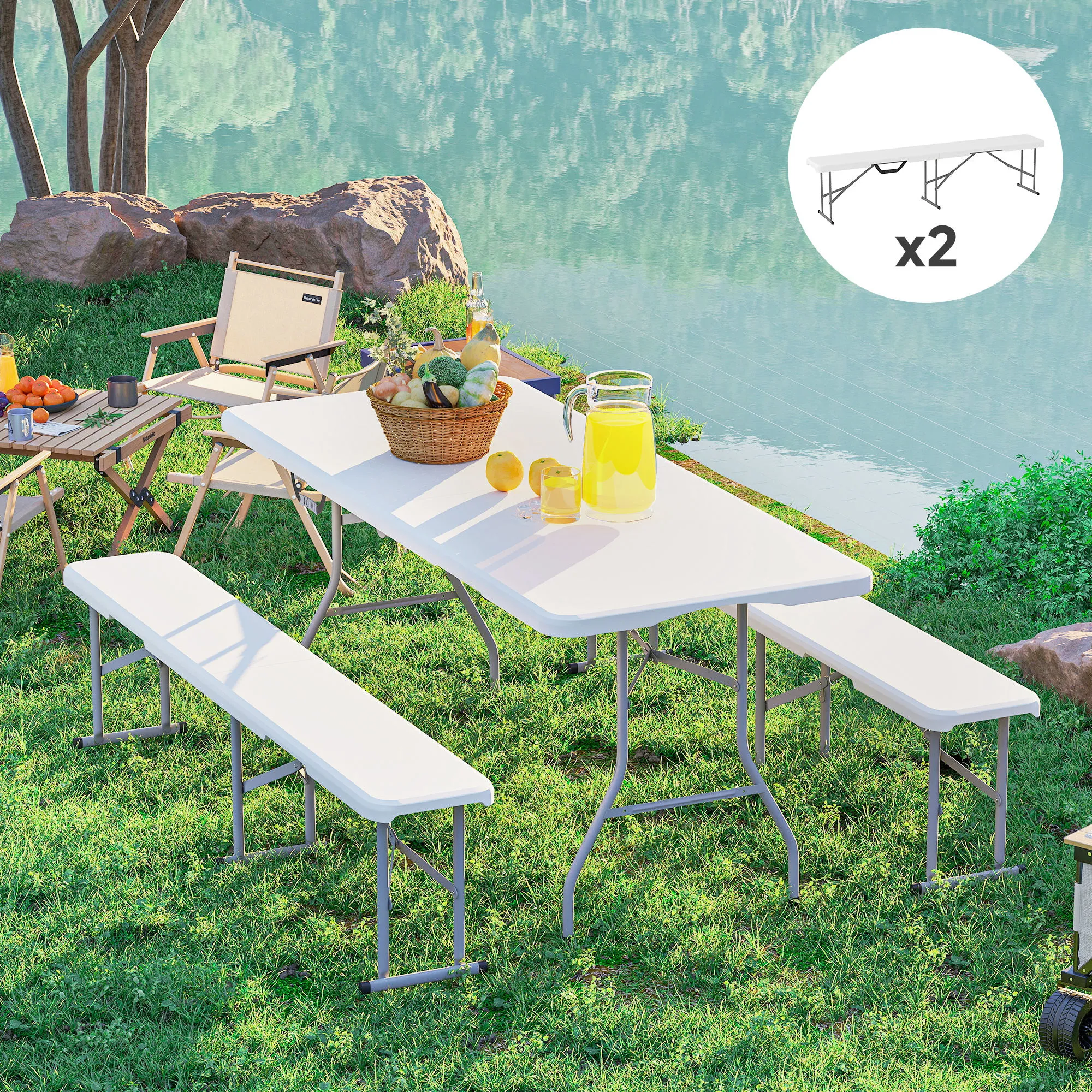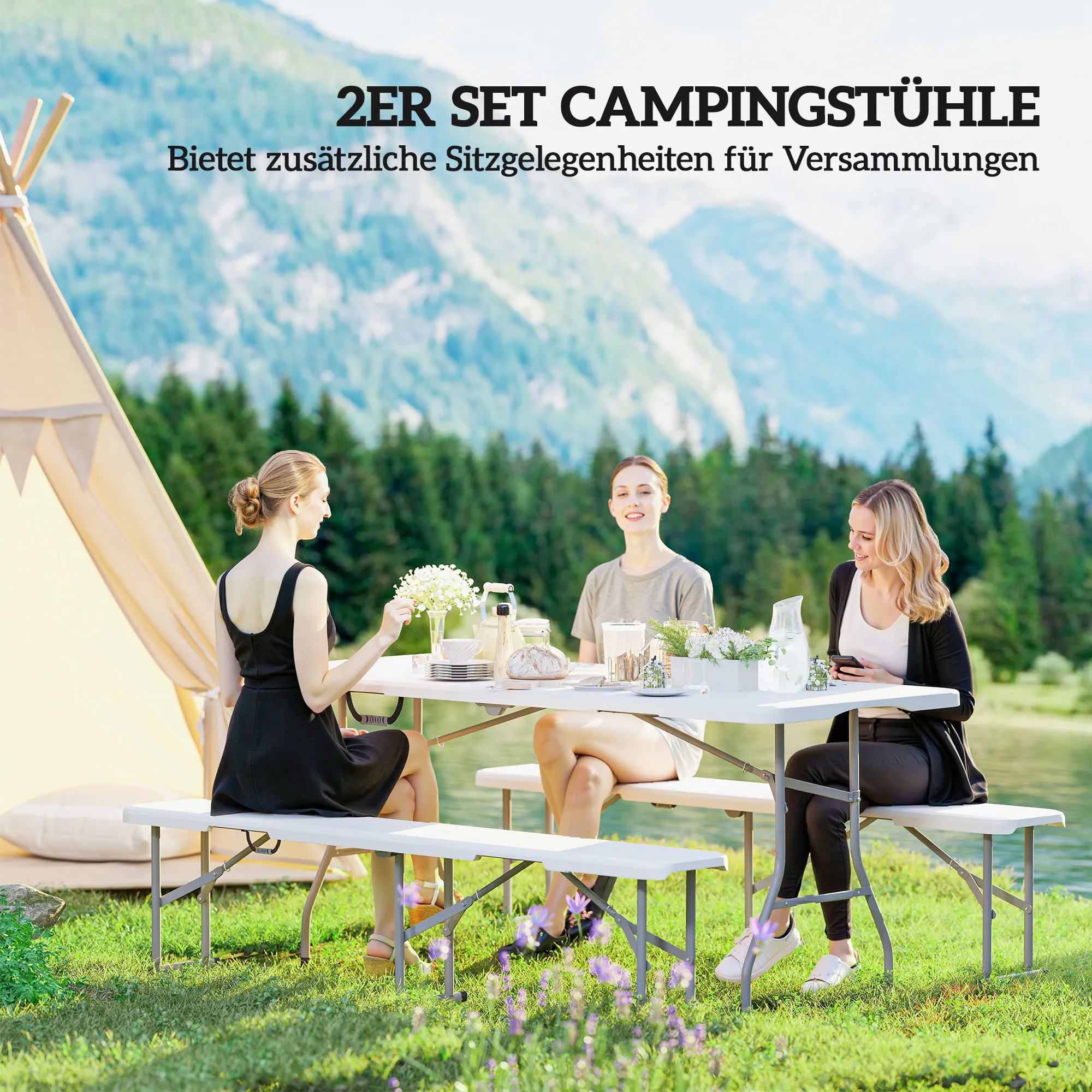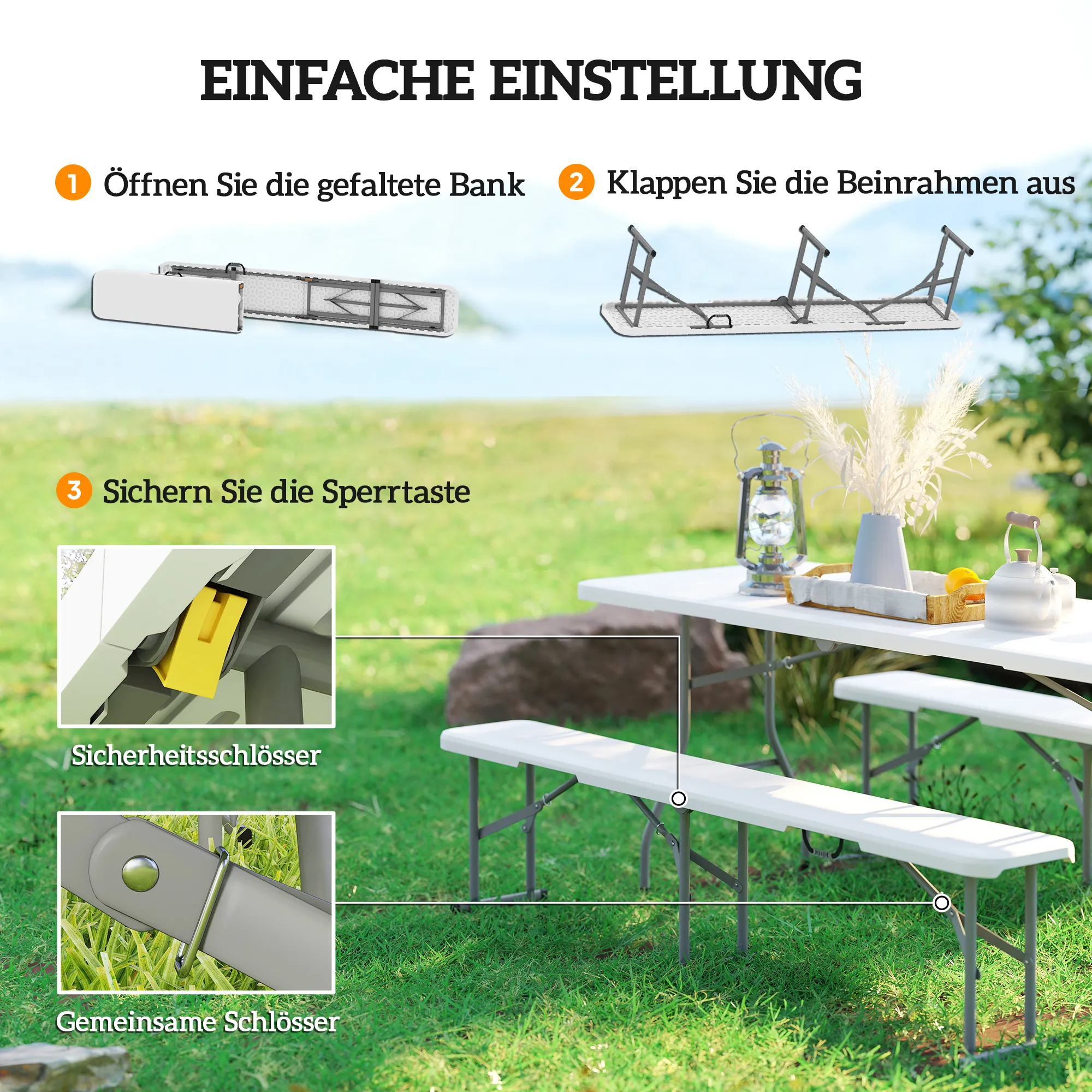 Erleben Sie Outdoor-Spaß mit den Campingbänken! Mit seiner wasserdichten HDPE Oberfläche und einem stabilen, pulverbeschichteten Gestell bietet die Partybank Langlebigkeit und sicheren Stand. Dank der Gelenkverriegelungen und rutschfesten Pads ist er besonders sicher und schont den Boden. Für mühelosen Transport lässt die Klappbank sich einfach zusammenklappen – perfekt fürs Camping oder als Extra-Sitz bei Gartenfesten!