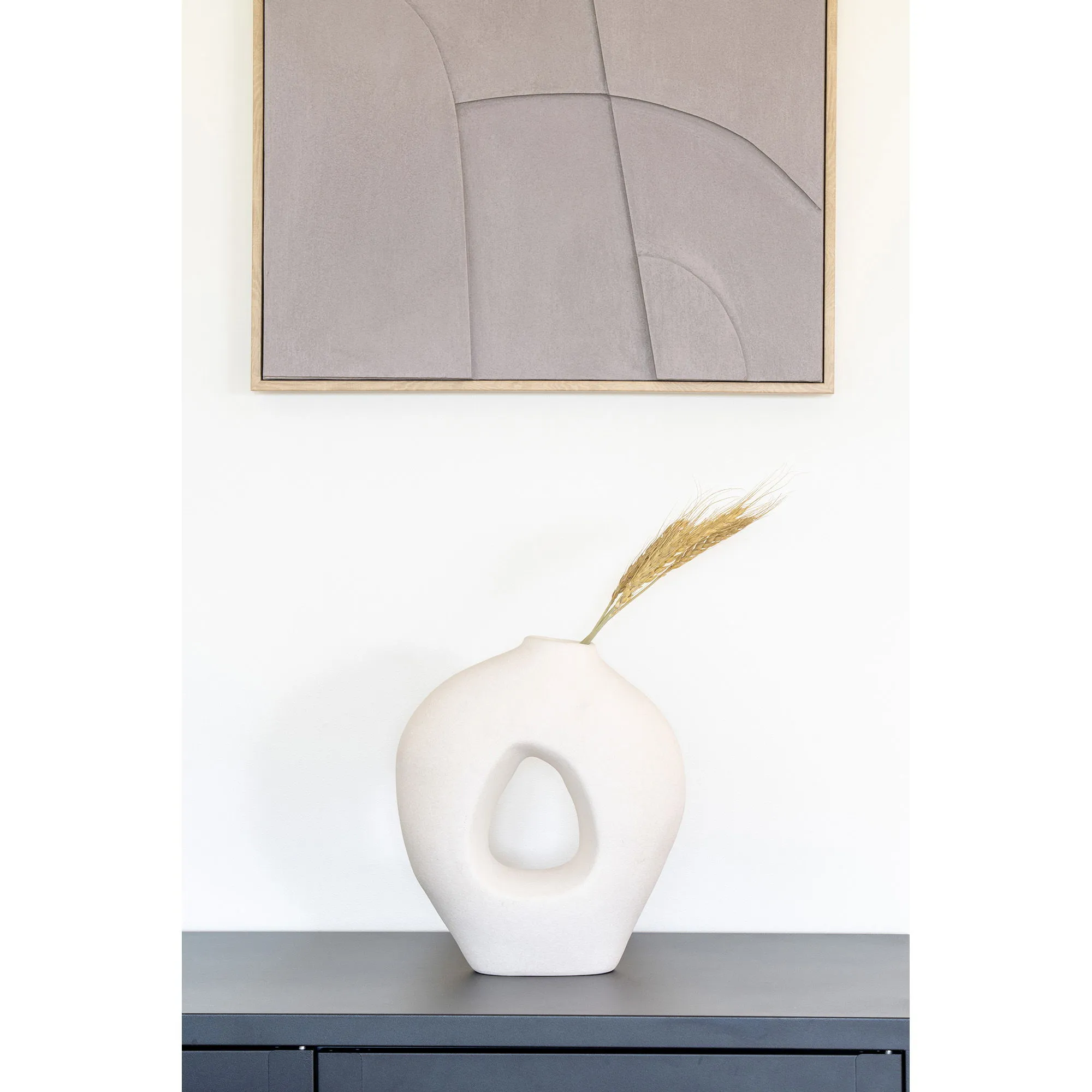 Die Keramikvase Weiß besticht durch ihre asymmetrische, organische Form, die perfekt für moderne Wohnräume geeignet ist. Ihr zeitgenössischer Charakter und die matte, einladende Oberfläche machen sie zu einem außergewöhnlichen Blickfang – sowohl als Pflanzbehälter als auch als eigenständige Kunstinstallation.