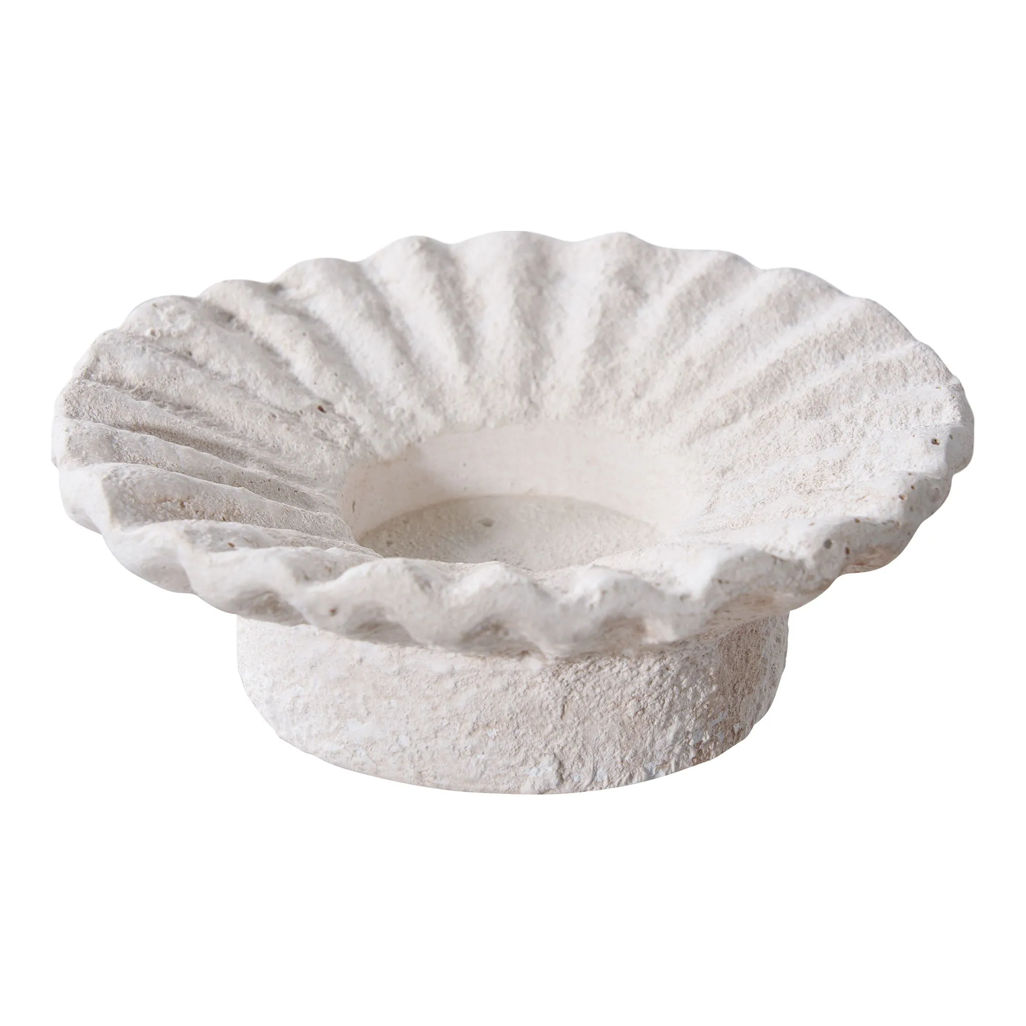 Dieser stilvolle Kerzenhalter besticht durch seine organische Form, die an eine Muschel erinnert, und fügt sich harmonisch in verschiedene Wohnstile ein. Mit seinen wellenförmigen Rändern und minimalistischen Design ist er nicht nur funktional, sondern auch ein attraktives Dekorationselement.