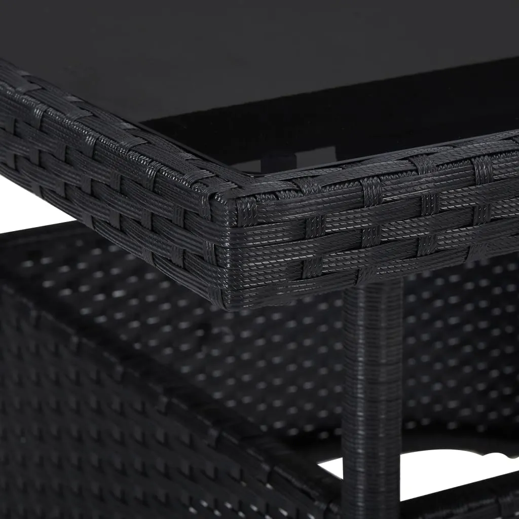 Garten-Esstisch Schwarz Poly Rattan und Glas