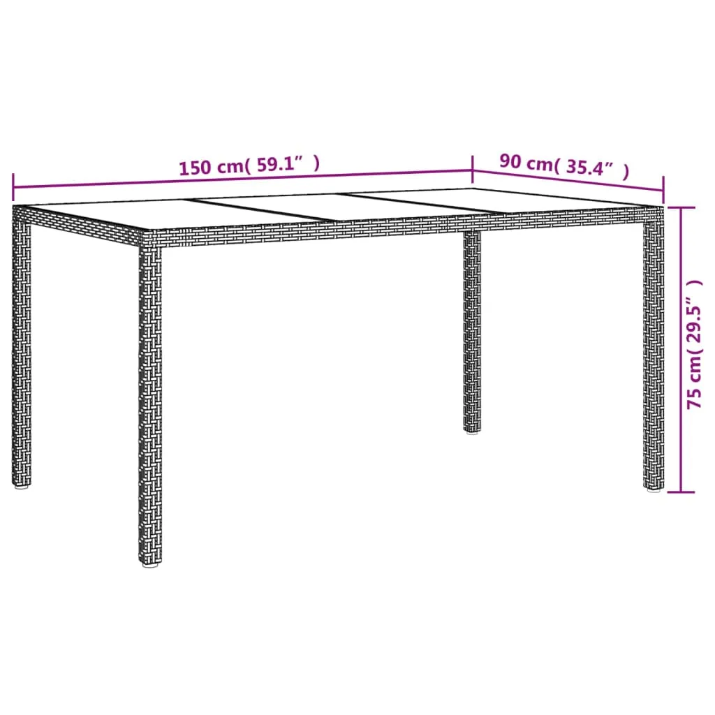 Gartentisch 150x90x75 cm Hartglas und Poly Rattan Grau