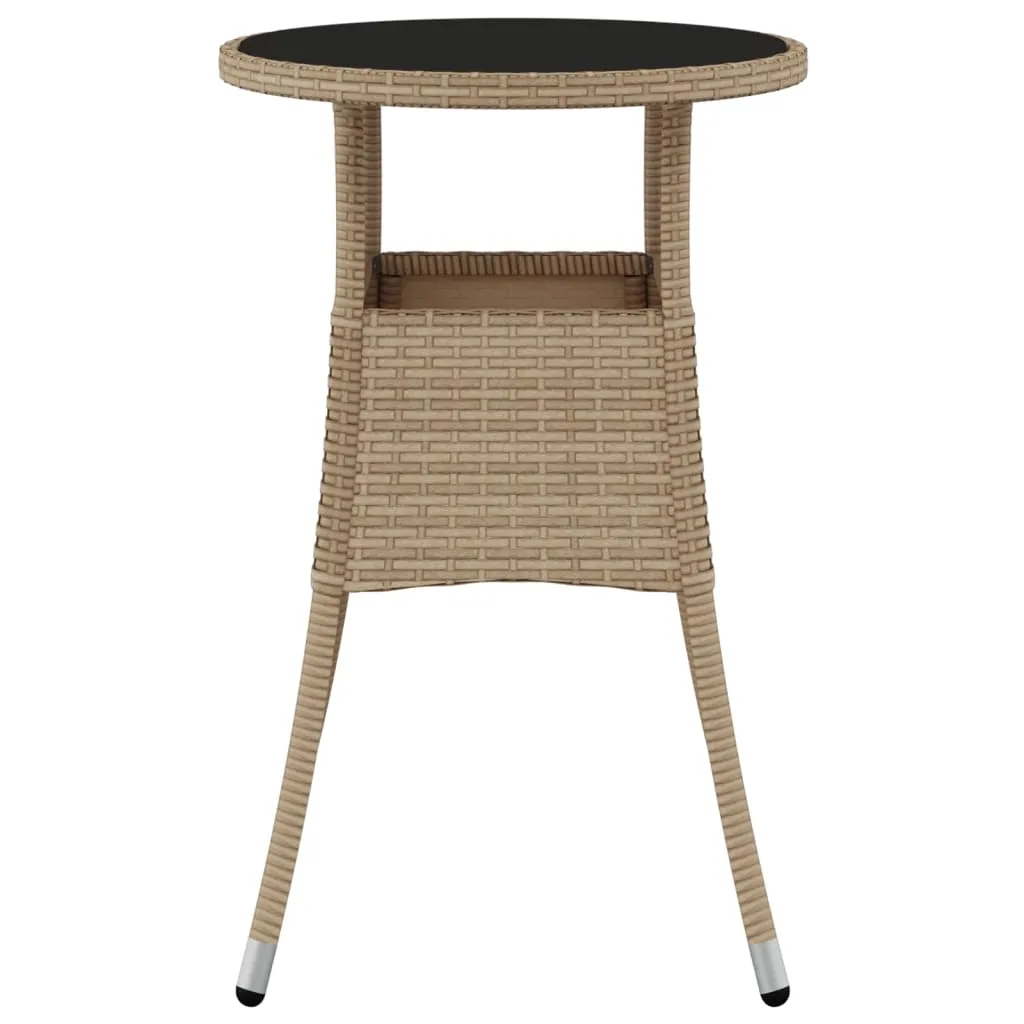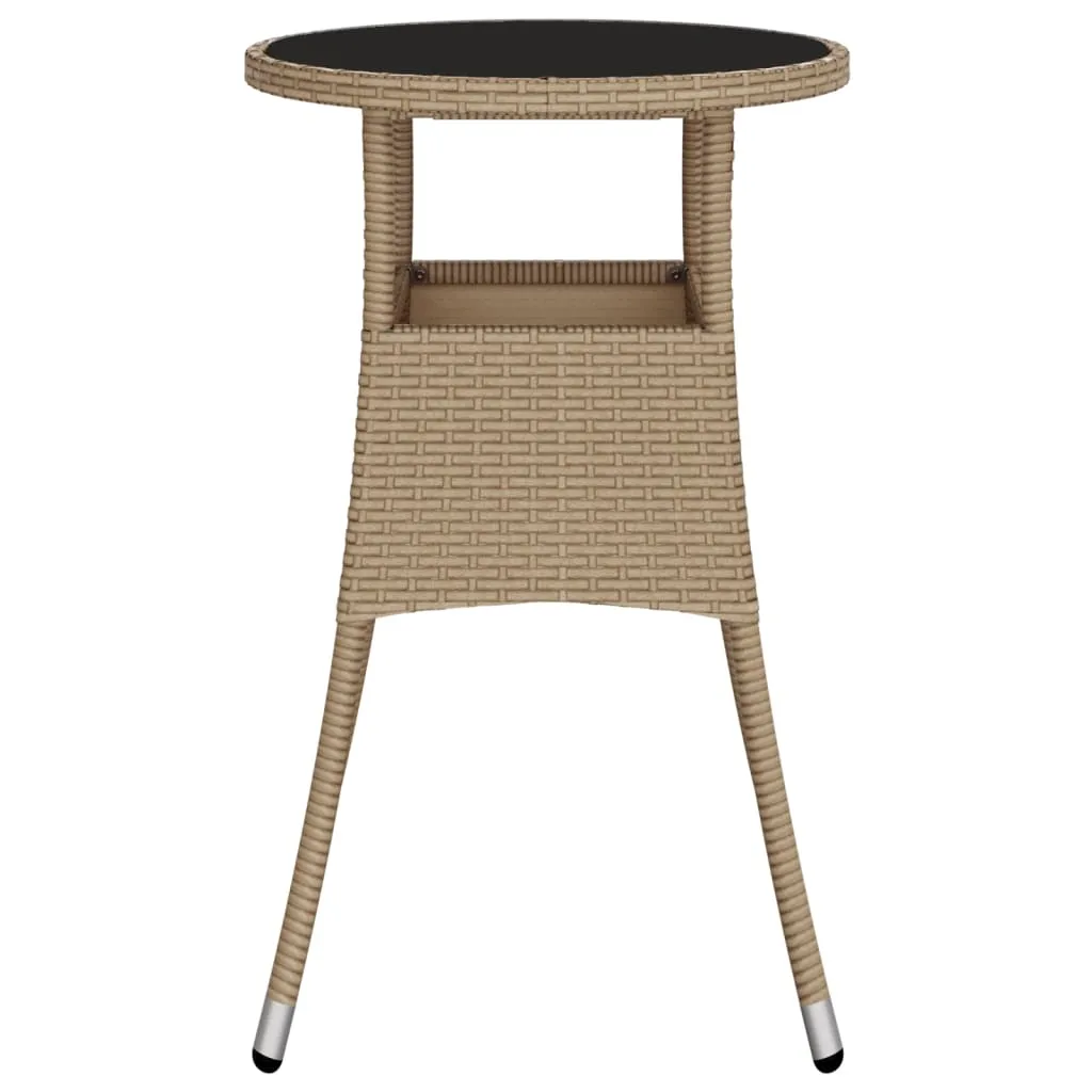 Gartentisch Ø60x75 cm Hartglas und Poly Rattan Beige
