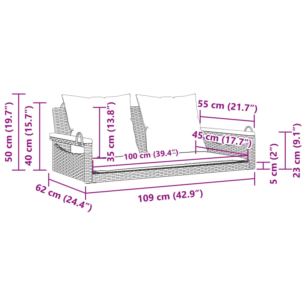 Hängebank mit Kissen Grau 109x62x40 cm Poly Rattan