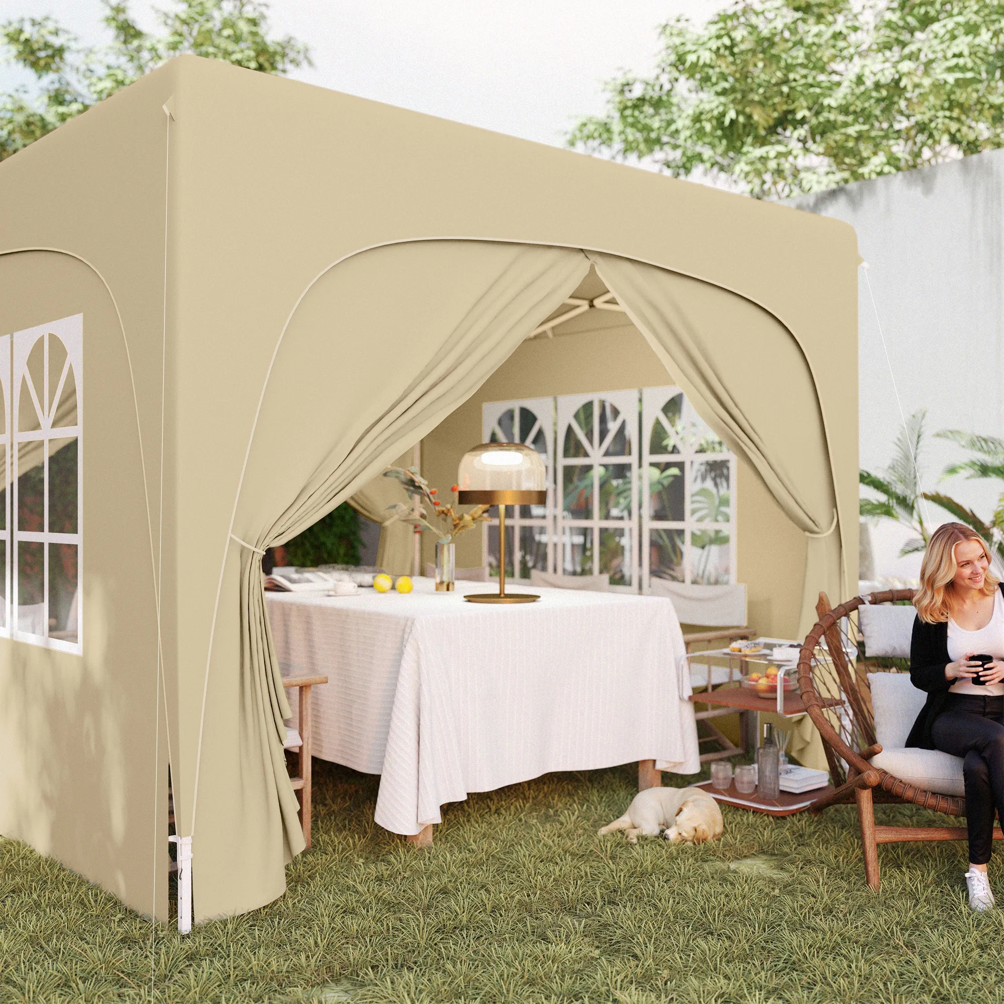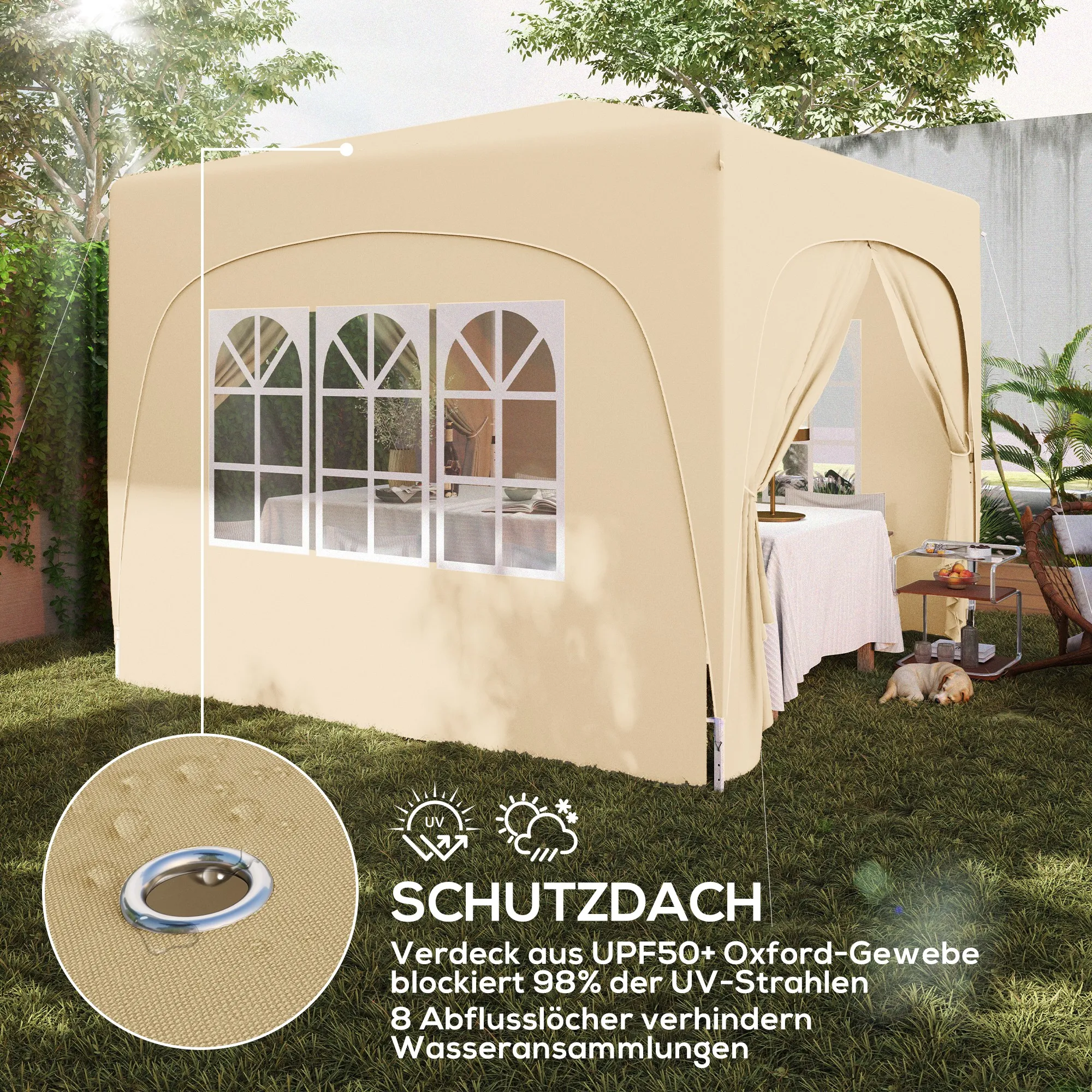 3 x 3 m Pavillon, Pop-up Gartenzelt mit Seitenwänden und Tragetasche, UPF50+, höhenverstellbar, Sand