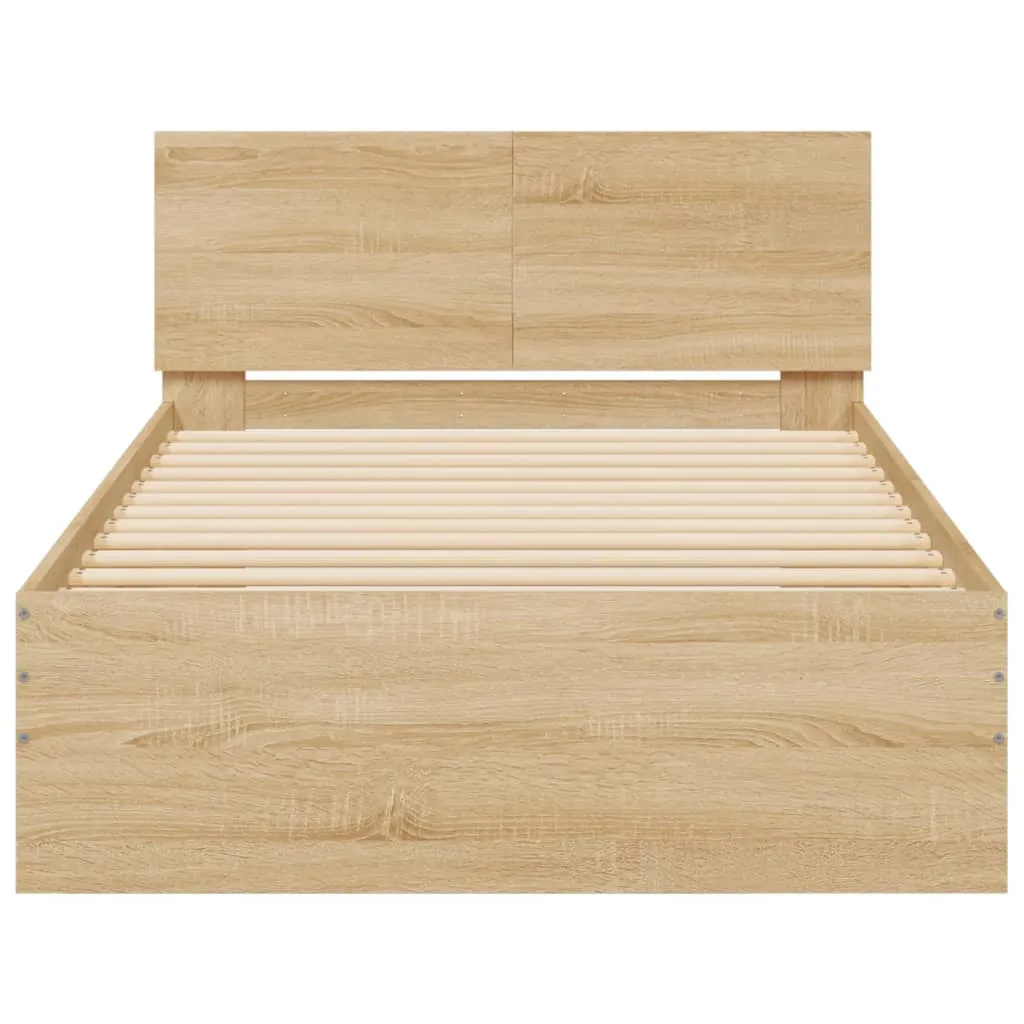 Bettgestell mit Kopfteil & LED-Leuchten Sonoma-Eiche 100x200 cm