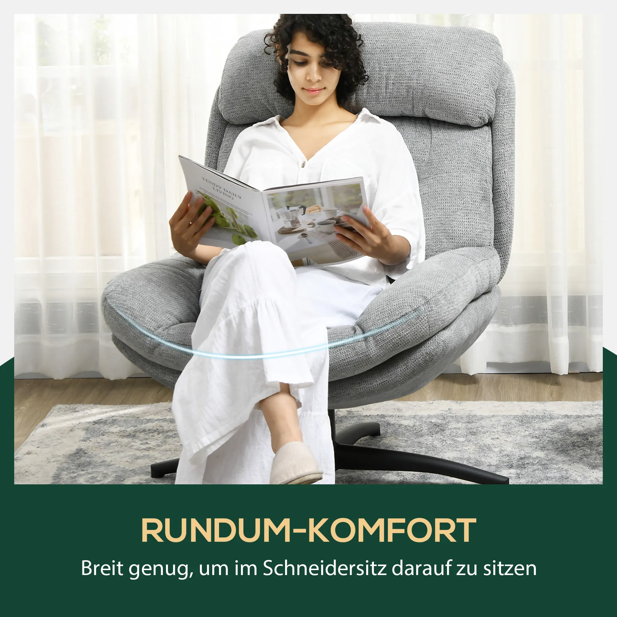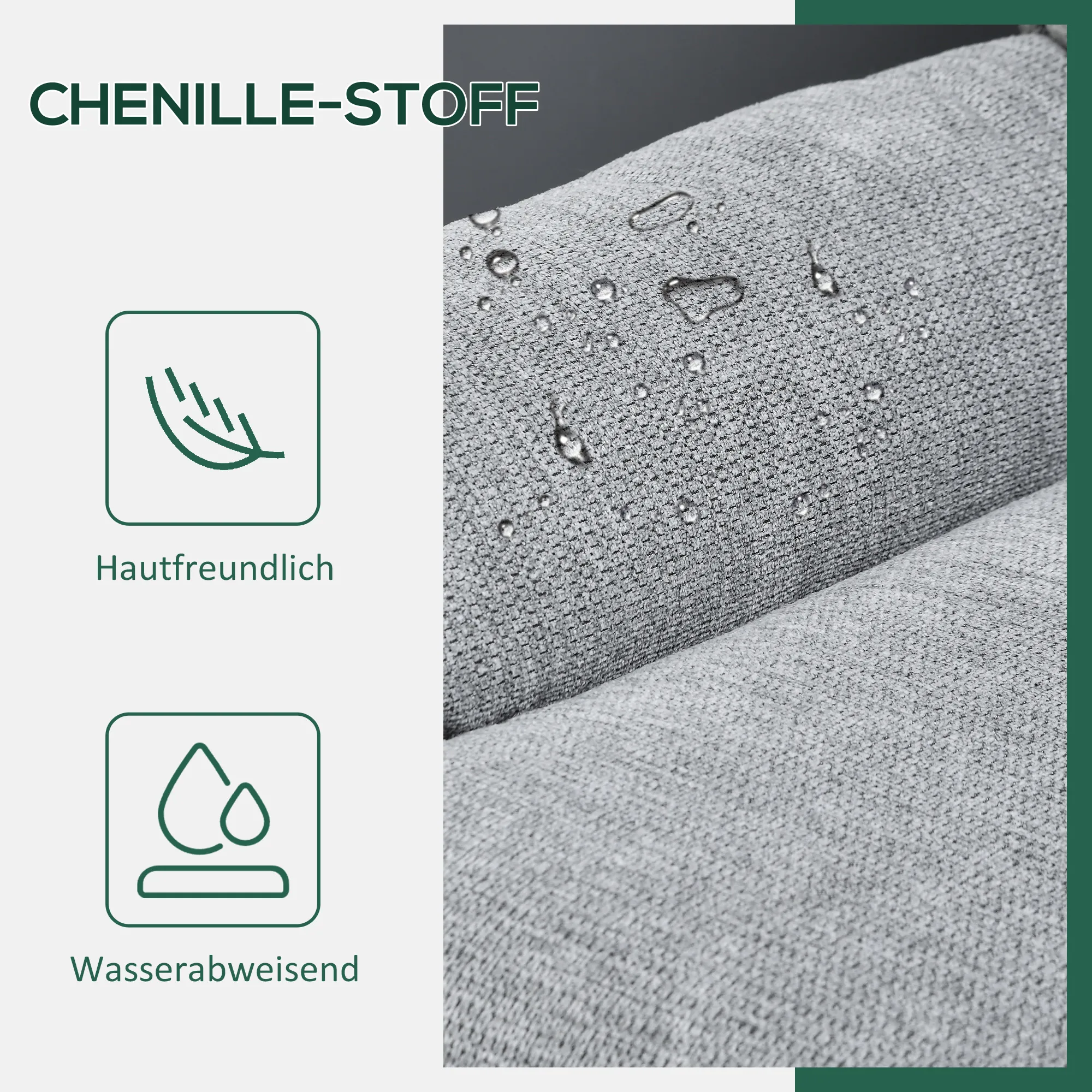 - Chenille-Stoff des Sessels kombiniert Komfort mit pflegeleichten Eigenschaften