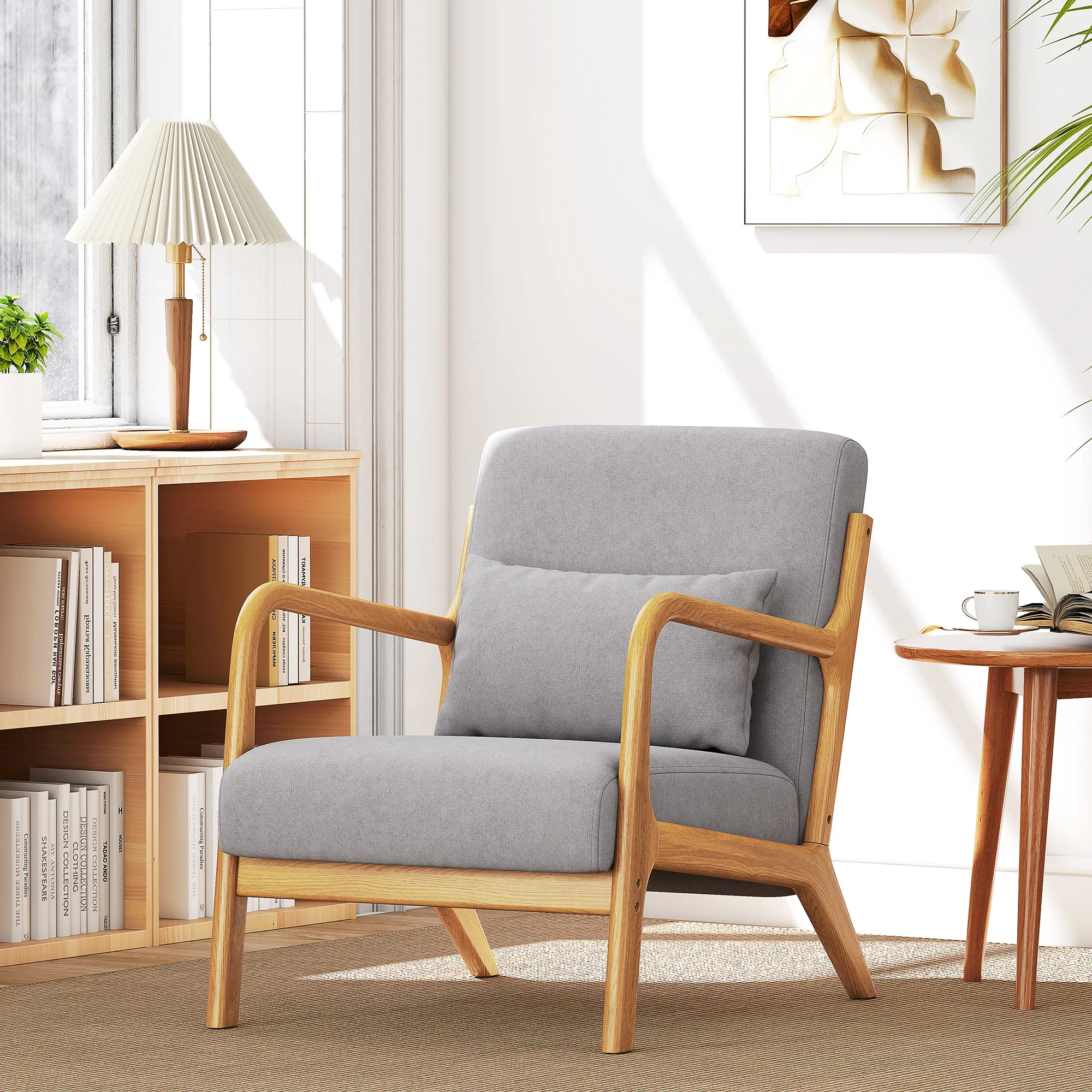 Eleganter Lounge-Sessel mit Holzrahmen und Schaumstoff-Polsterung, Samtoptik, für Wohnzimmer, Schlafzimmer, Grau