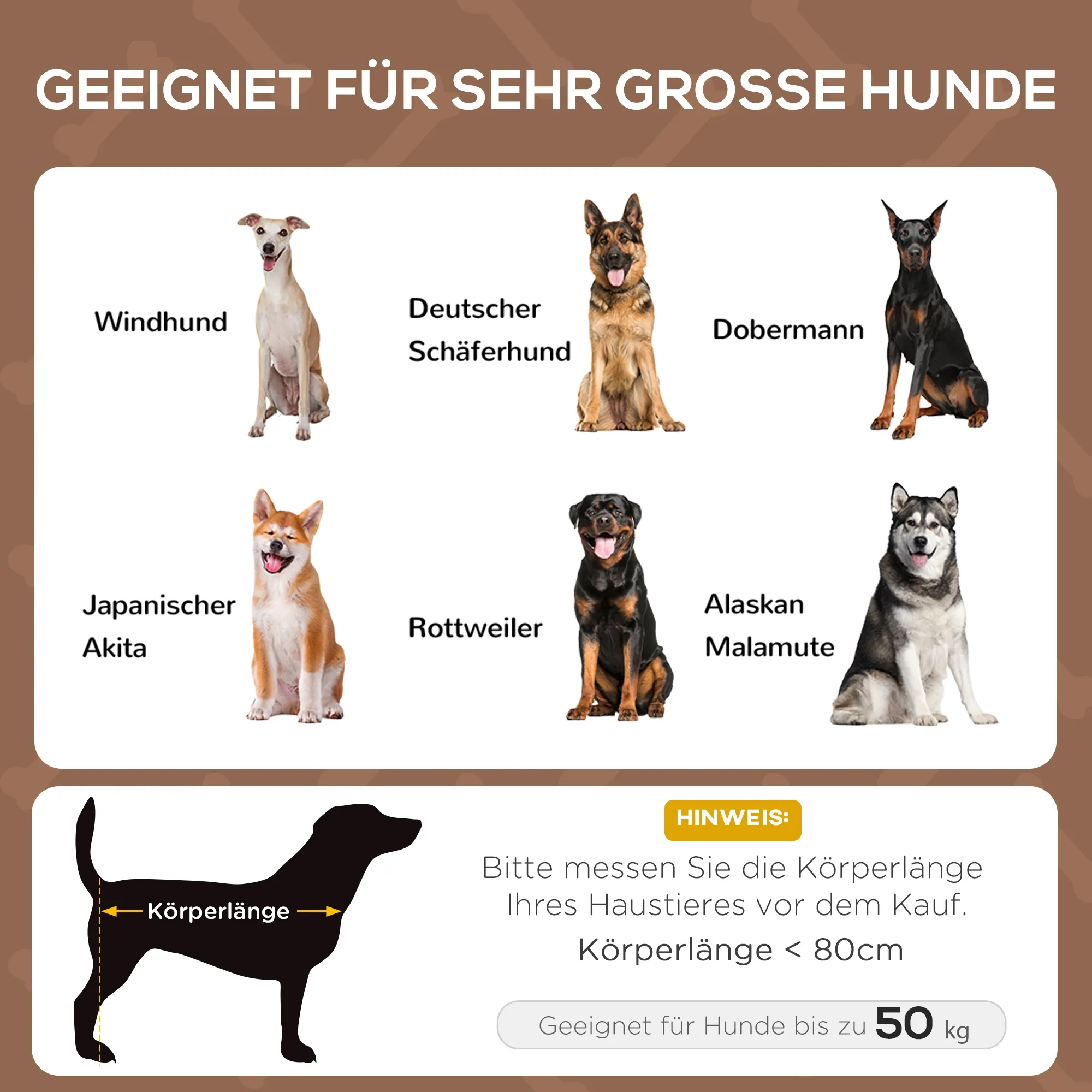 - Geeignet für mittelgroße Hunde mit einer Körperlänge von weniger als 80 cm und einem Gewicht von bis zu 50 kg
