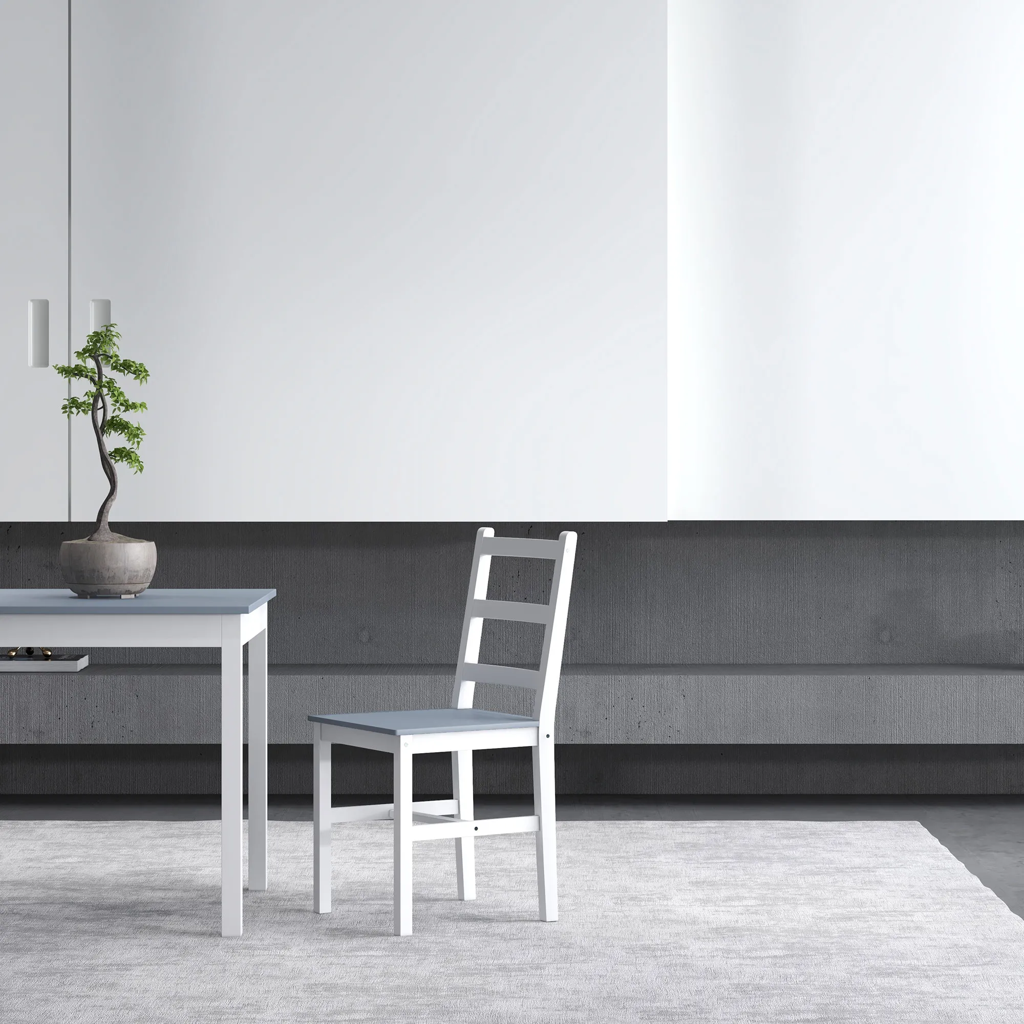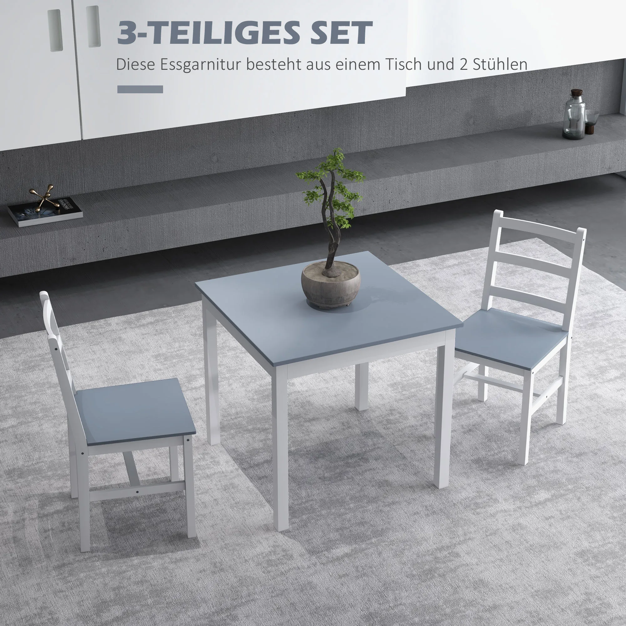 Essgruppe für 2 Personen, 2 Stühle, 1 Tisch, Kiefernholz, Weiß + Grau
