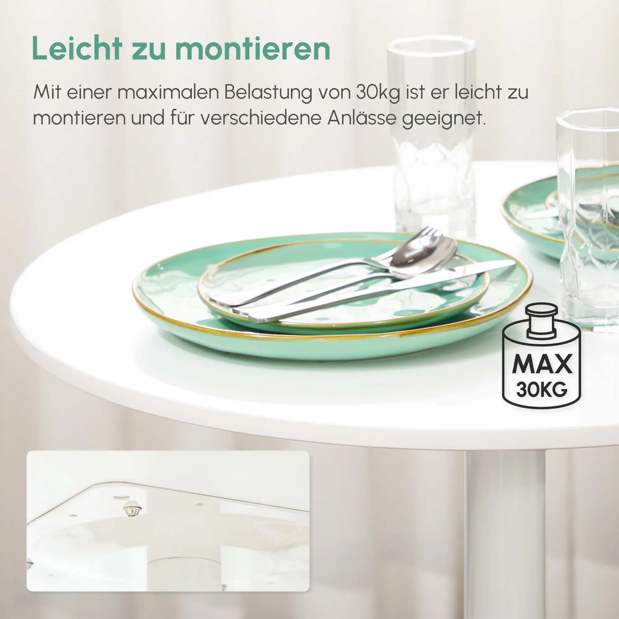 Esstisch für 2 Personen, runde Tischplatte, Stahlfuß, weiß, 70 x 70 x 75 cm
