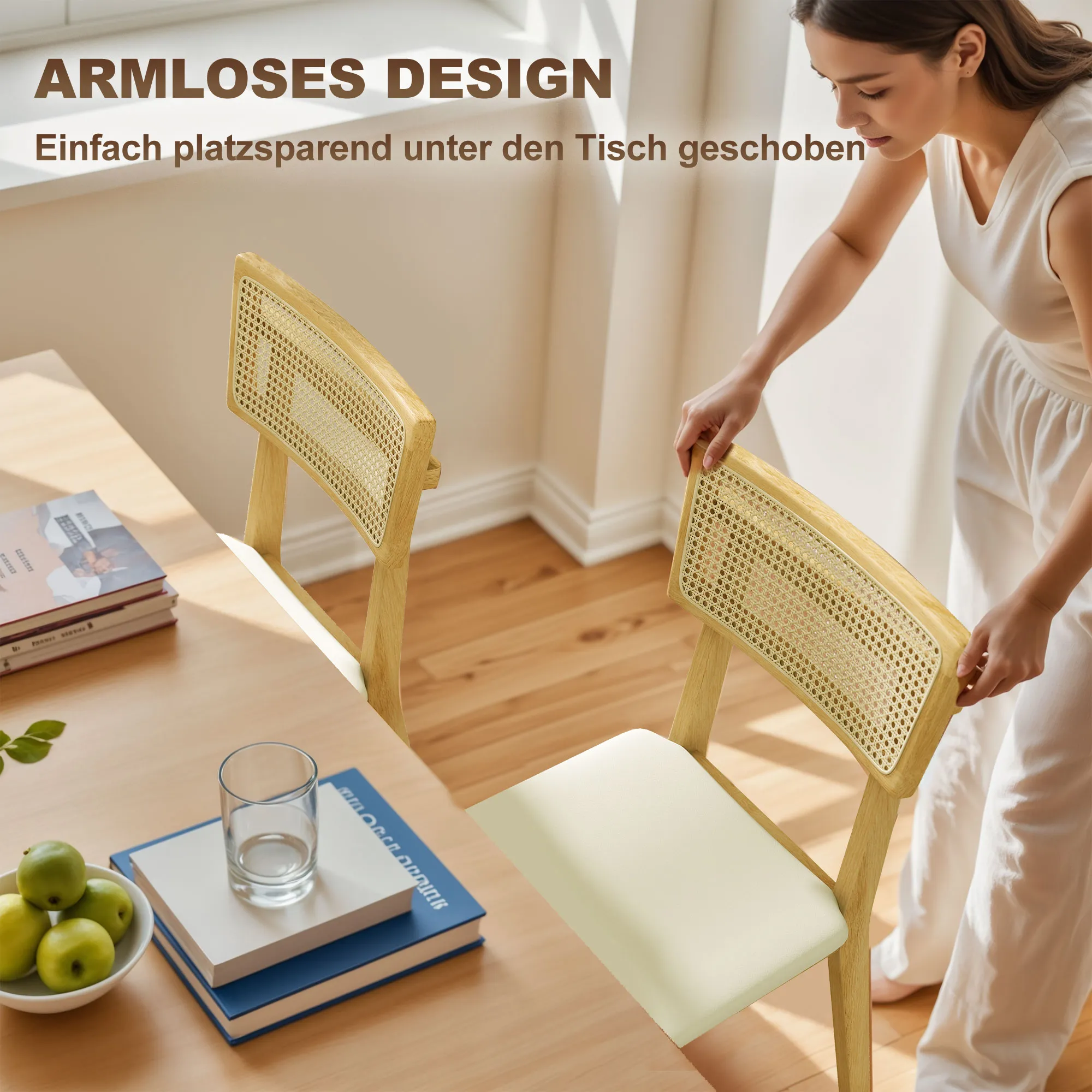 Beschreibung:- Atmungsaktives Rattan-Rückenteil verleiht dem Esszimmerstuhl Stil und Komfort