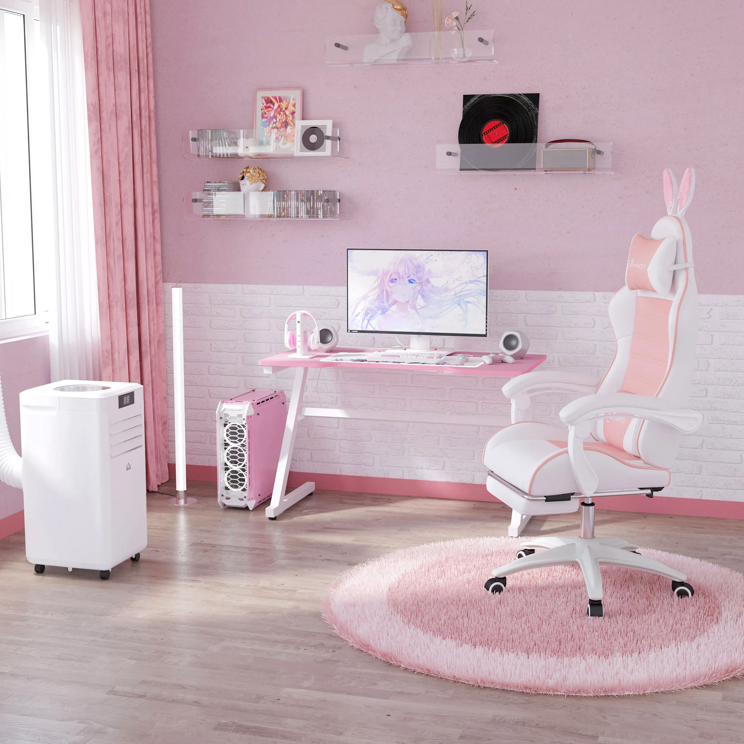 Gaming-Stuhl mit Fußstütze 65L x 63B x 136-142H cm Rosa+Weiß