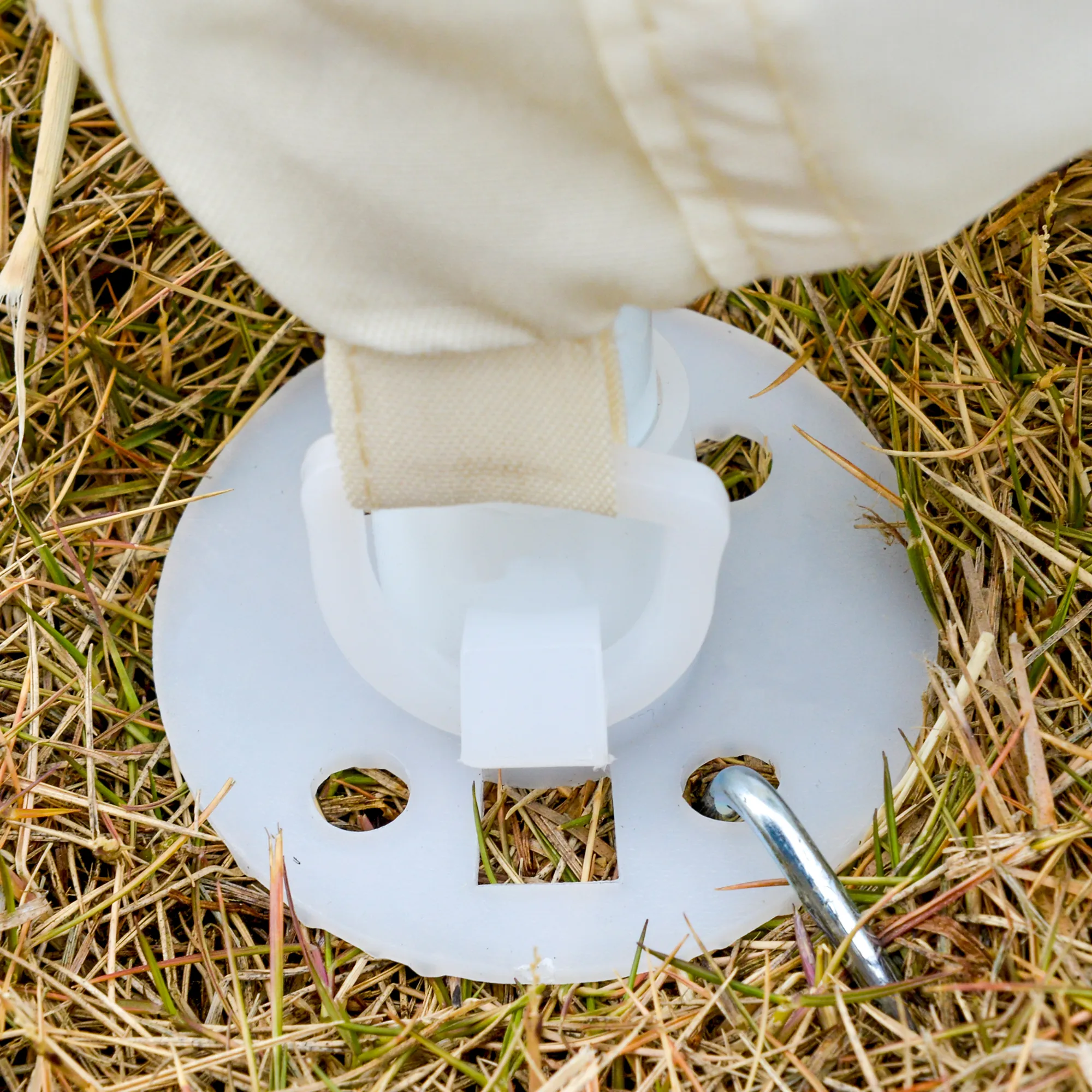 - 8 Heringe zur Verankerung im Boden und 4 Abspannsseile sorgen für zusätzliche Stabilität