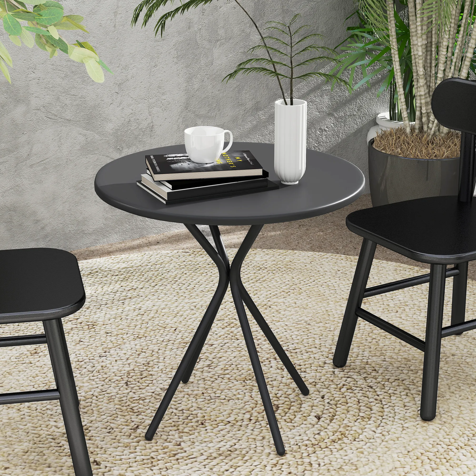 Gartentisch Ø60 x 70 cm, Wetterfest Balkontisch aus Stahl, Runder Esstisch mit Fußpolster Schwarz