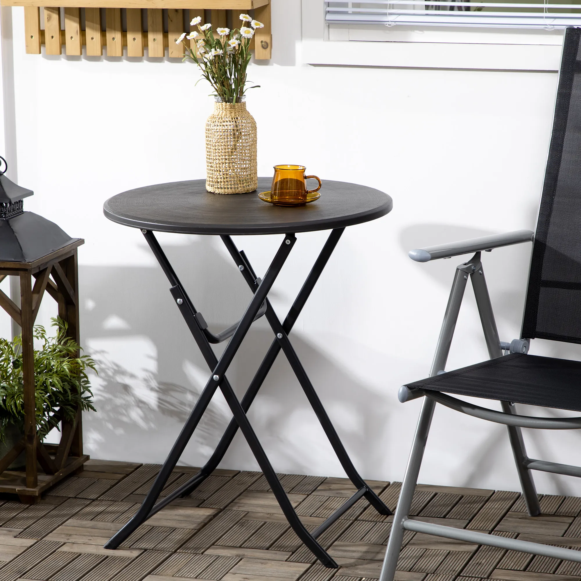 Gartentisch, rund, klappbar, für 2 Personen, Holzoptik, Stahl+Kunststoff, dunkelgrau, 60 x 60 x 73 cm