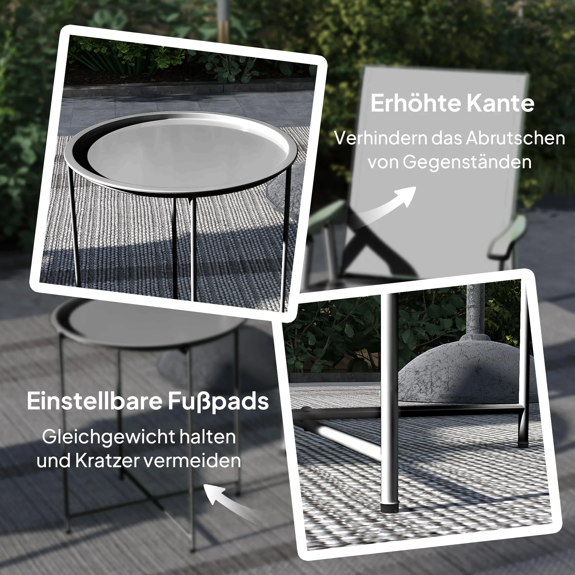 Gartentisch, Runder Außen-Beistelltisch aus Stahl mit herausnehmbarem Tablett, faltbares Design, Terrassentisch, Schwarz