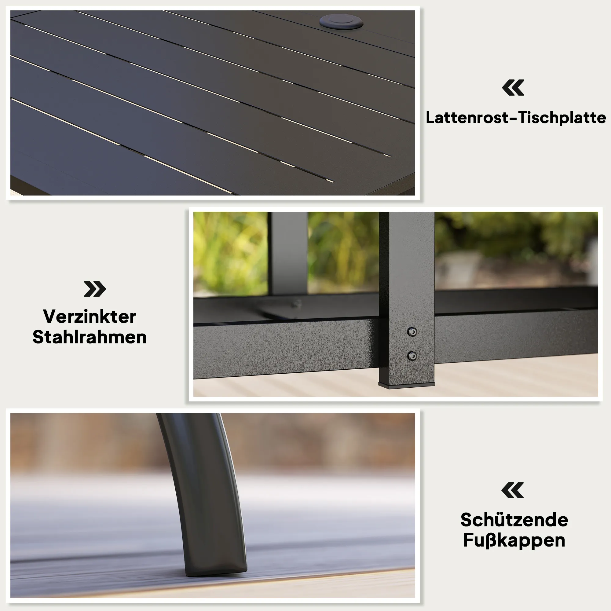 - Pulverbeschichtete, verzinkte Stahlstruktur des Terrassentisches ist stark und haltbar